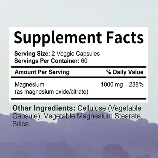 Magnesium Citrate 1000mg - 120 Capsules for Muscle, Nerve, Bone & Heart Support – Highly Absorbable, Premium Dietary Supplement