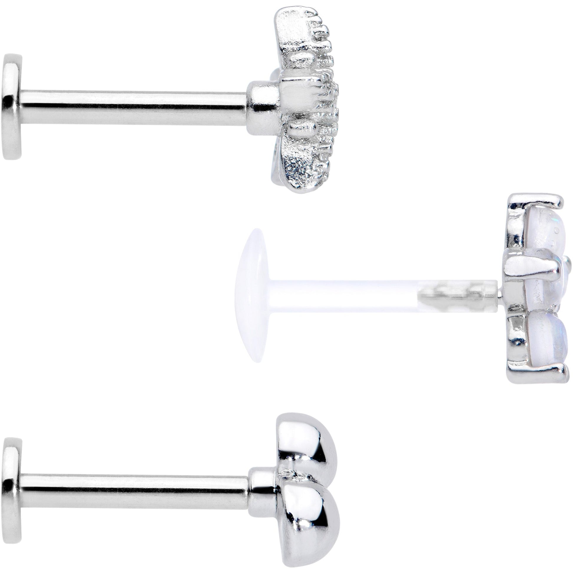 16 Gauge 5/16 CZ Gem White Faux Opal Bioplast Labret Tragus Set of 3