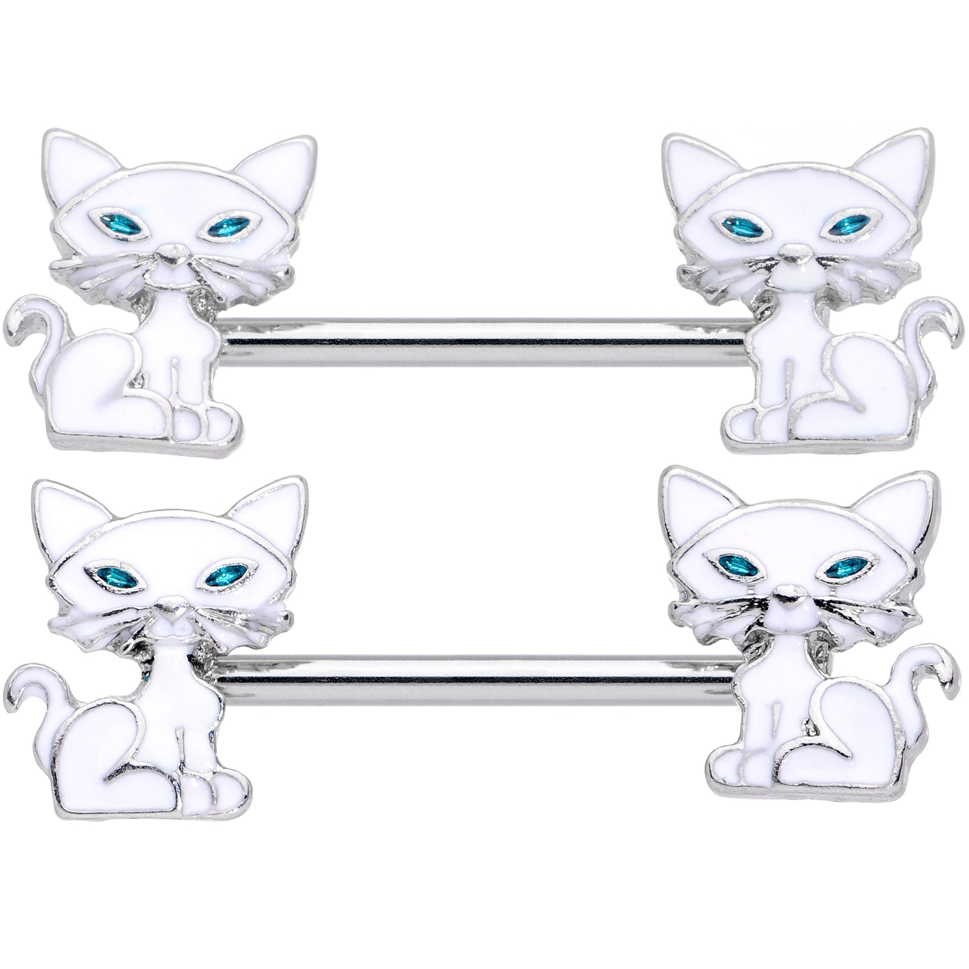 14G 9/16 Blue Eyed White Cat Barbell Nipple Ring Set