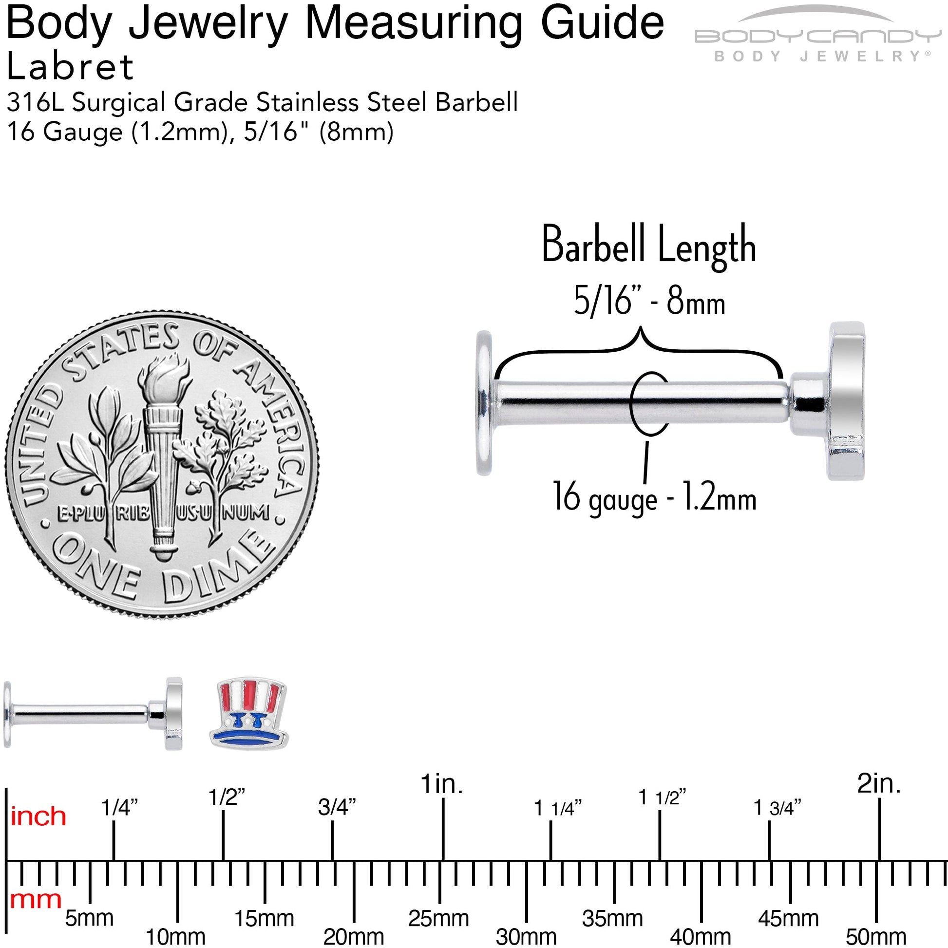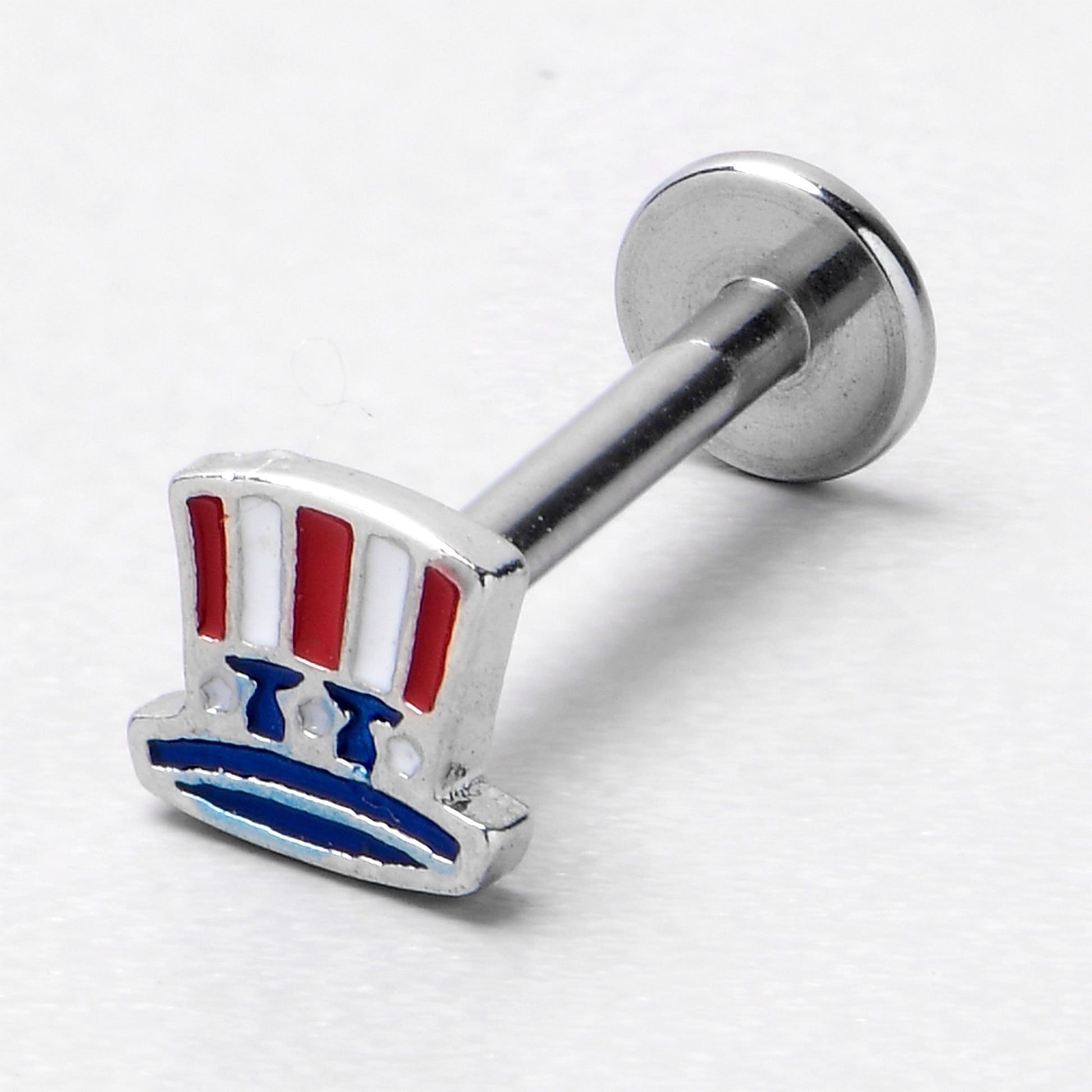 16 Gauge 5/16 Patriotic Uncle Sam Top Hat Labret Monroe Tragus