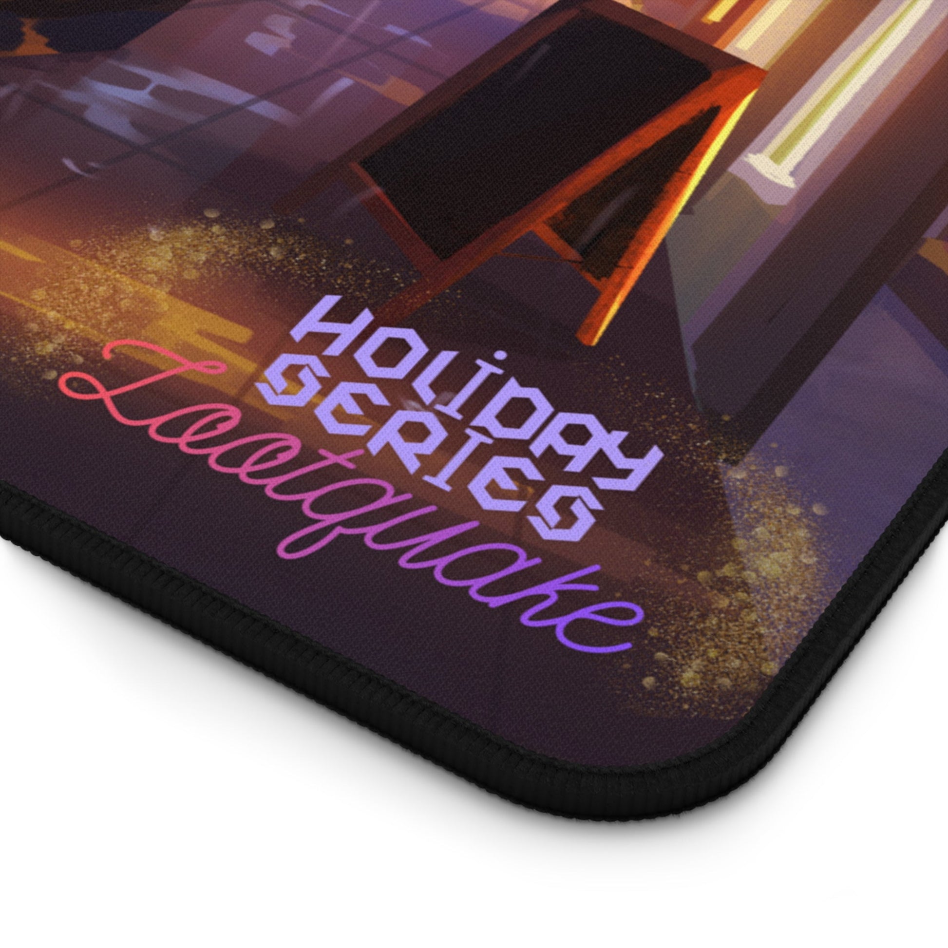 Desk Mat - Mousepad with Cozy Rainy Street Illustrations (Lootquake Holiday Series)