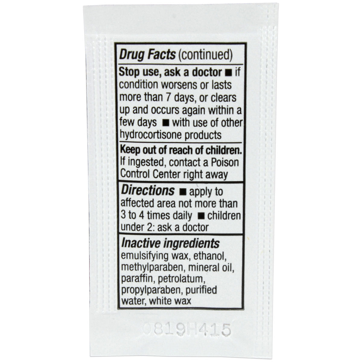 Hydrocortisone 0.9gm. Pouch, 144 per box