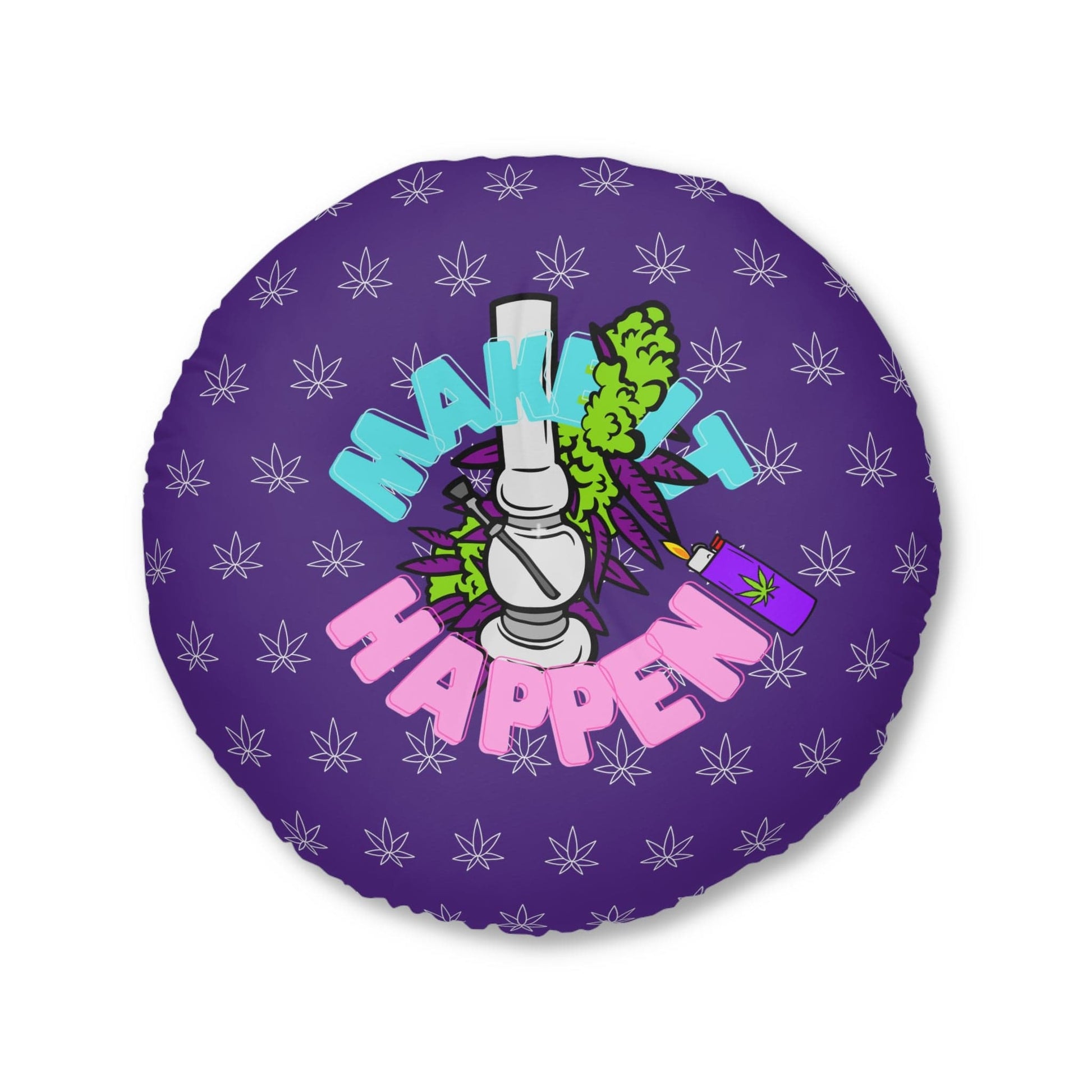 Make It Happen Cannabis, Bong, & Lighter Tufted Floor Pillow, Round