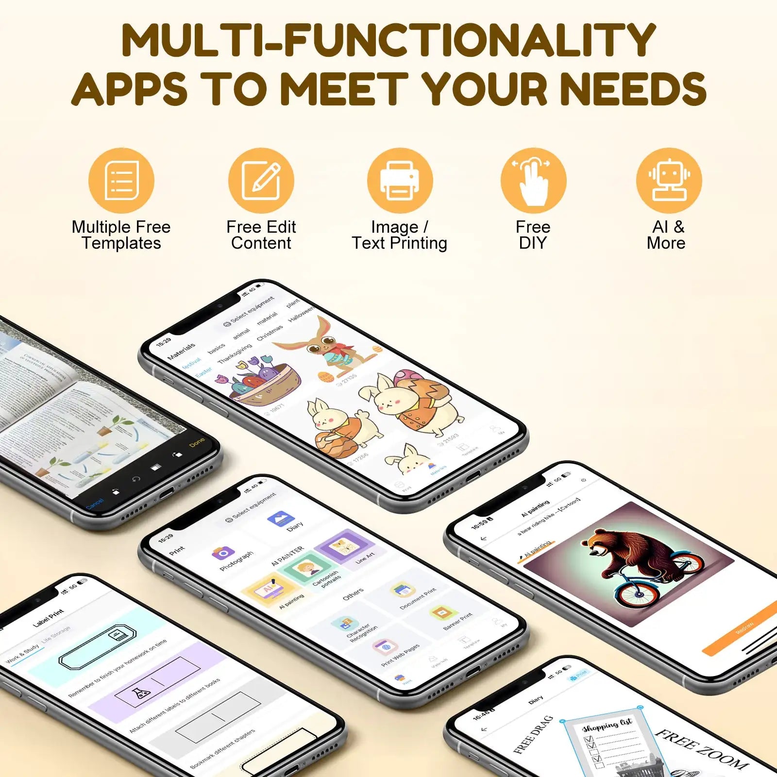 Mini Printer, All Purpose Sticker Maker With Thermal Papers, Bluetooth Portable Printer All Purpose