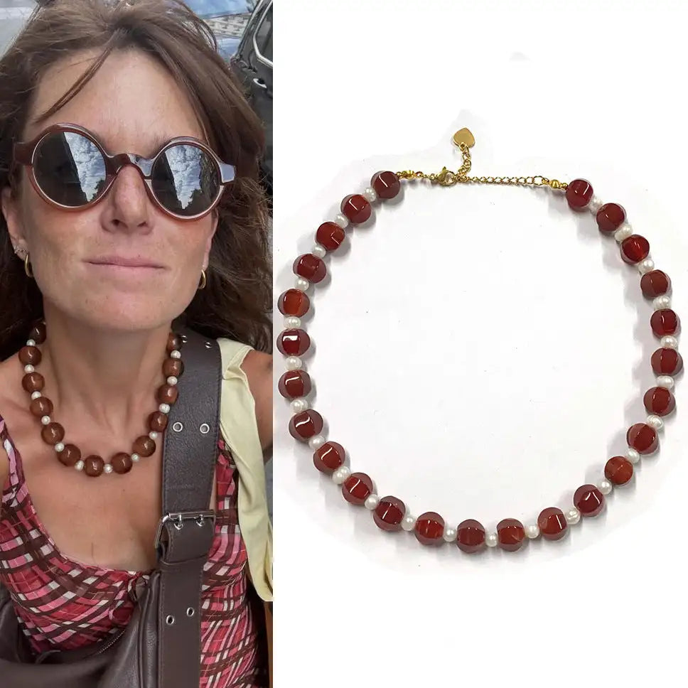 Color: red freshwater pearl 38 5CM necklace NP5-6B10, Red Shell Pearl 38 5CM necklace NP6B10, Brown freshwater pearl 38 5CM necklace NP5-6B10, pink freshwater pearl 38 5CM necklace NP5-6B10, cloudy blue freshwater pearl 38 5CM necklace NP5-6B10, cow fruit green freshwater pearl 38 5CM necklace NP5-6B10