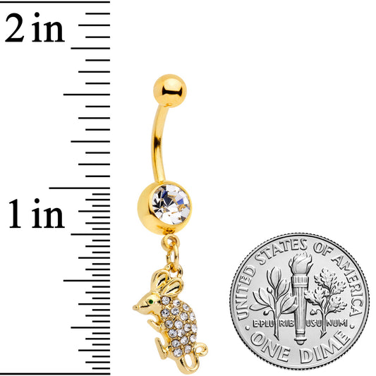 Clear Aqua Gem Gold Tone Mouse Dangle Belly Ring