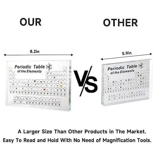 【Made with real elements】This periodic table with 83 real elements embedded in crystal clear acrylic, except for some radioactive elements,That's very collectible.