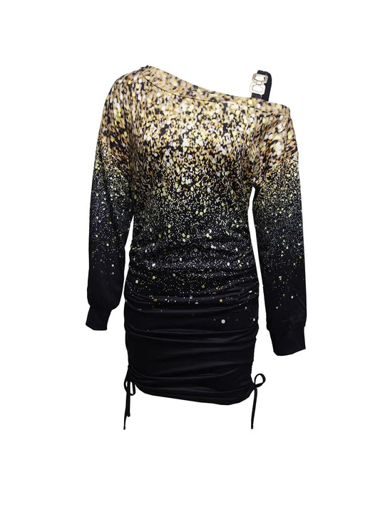 Ladies' Printed Off Shoulder Casual Bag Hip Dress