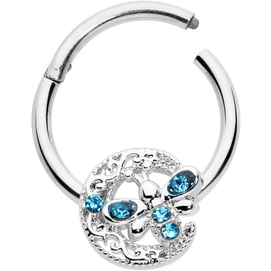 16G 3/8 Clear CZ Gem Butterfly Love Bug Hinged Segment Ring