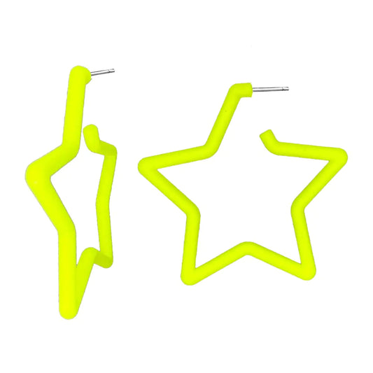 80 90s colorful star hoop earrings Colorful Big Hoop Earrings Retro Neon Earrings Dangle Earrings for Women (STAR yellow)