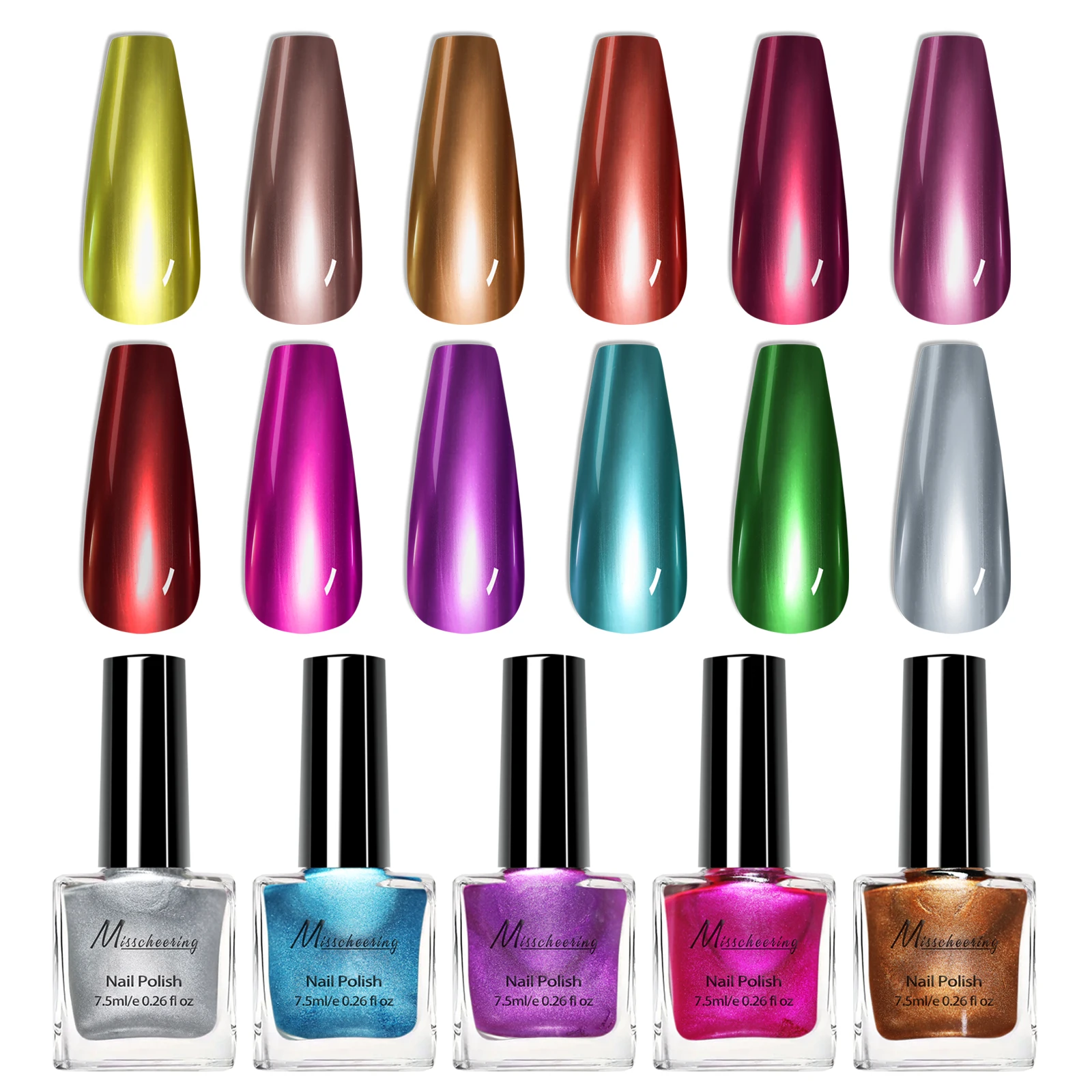 12 colors 7.5ml metal mirror nail polish semi-permanent topcoat nail polish LED gel varnish suitable for girls diy nail charm