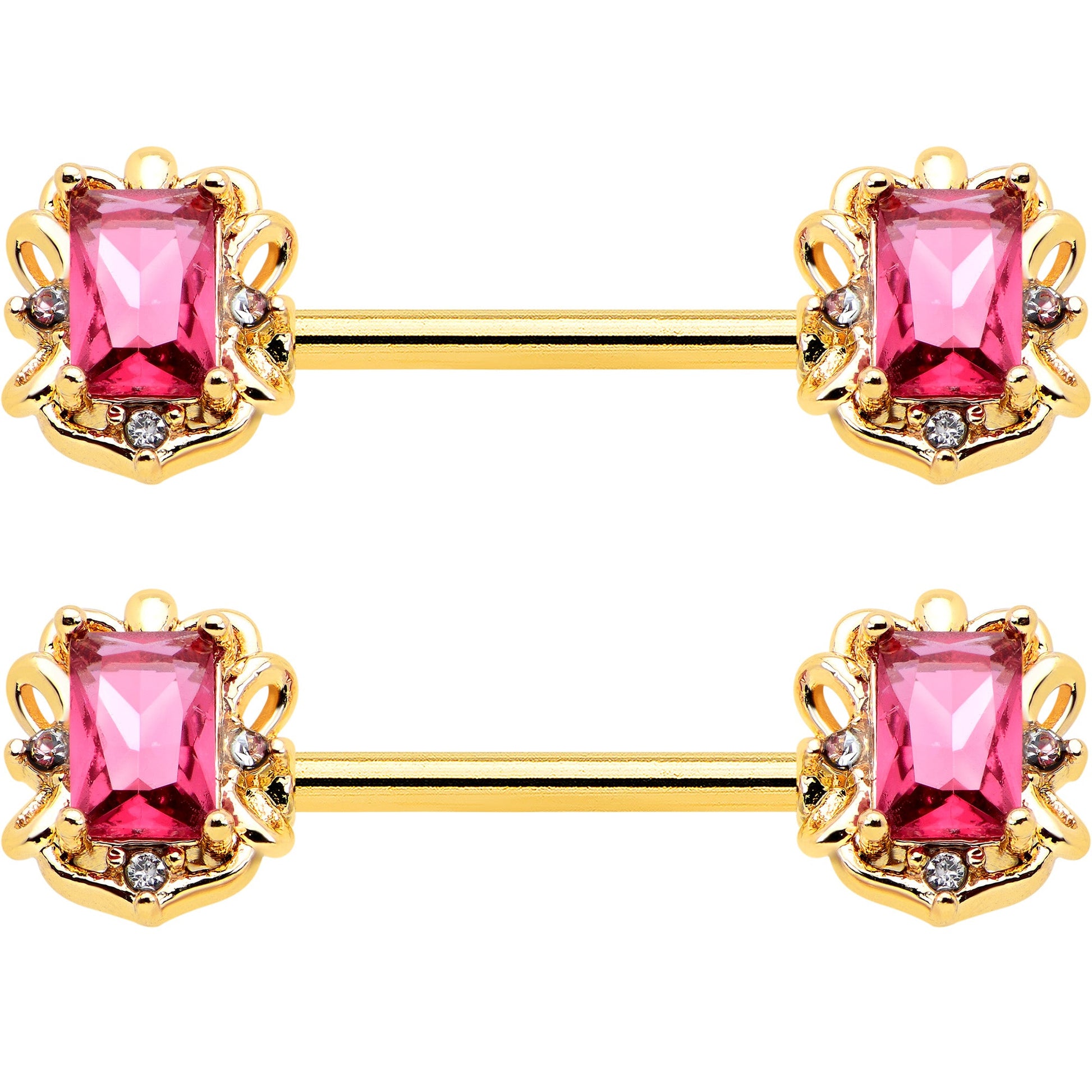 14G 9/16 Red Gem Gold Hue Regal Escutcheon Barbell Nipple Ring Set