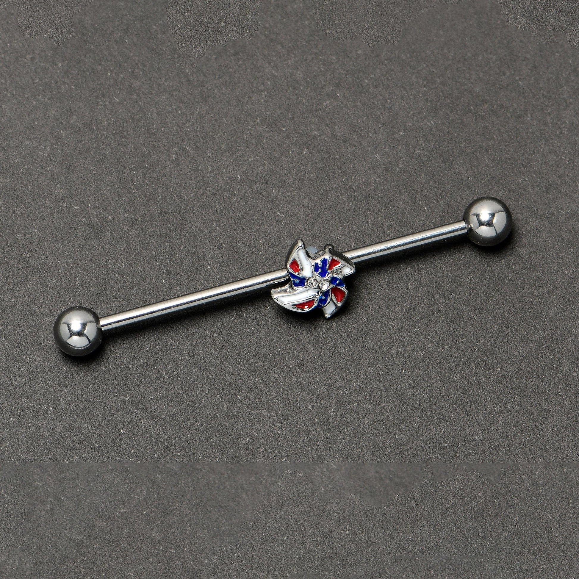 14 Gauge Patriotic Pinwheel Industrial Barbell 38mm