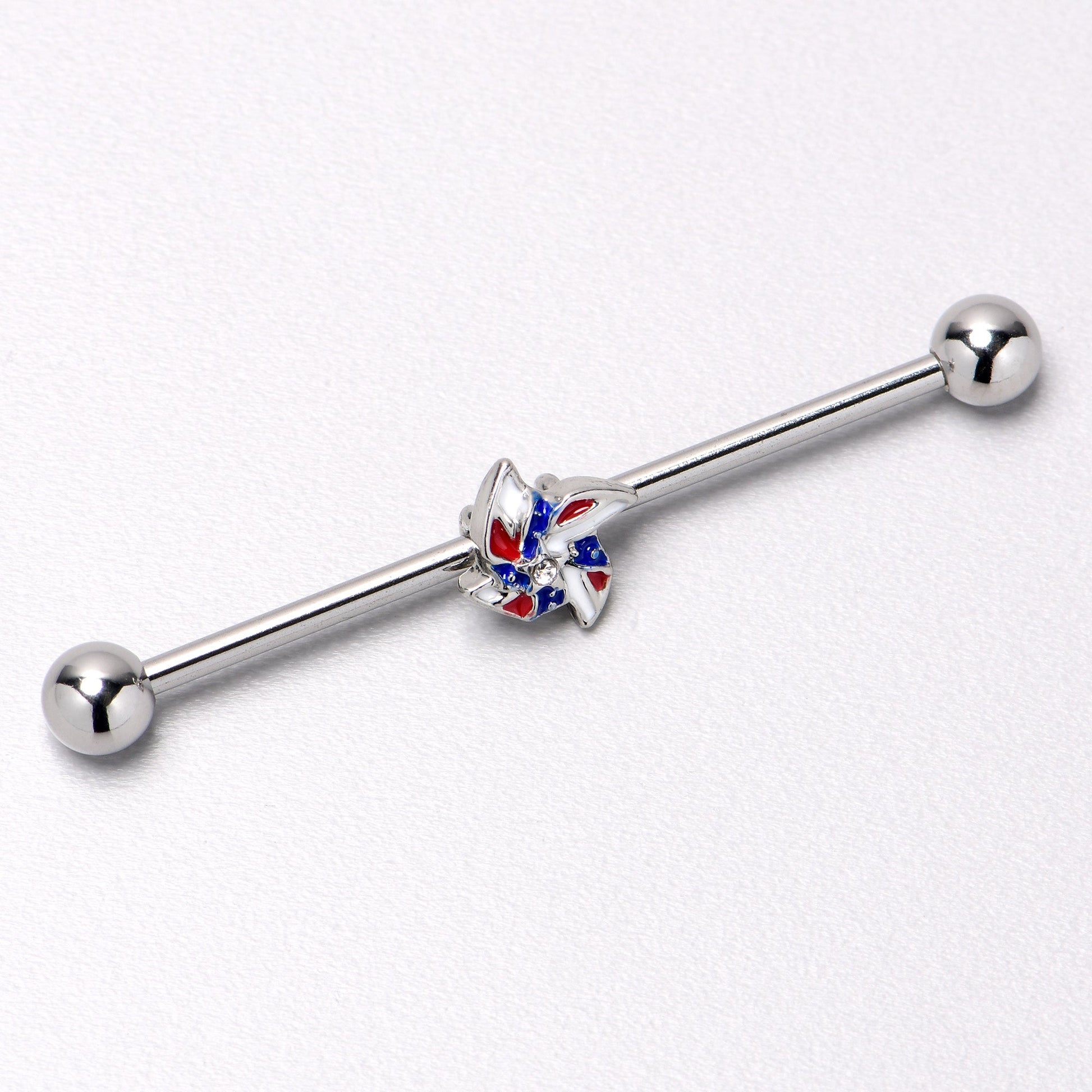 14G Patriotic Pinwheel Industrial Barbell 38mm