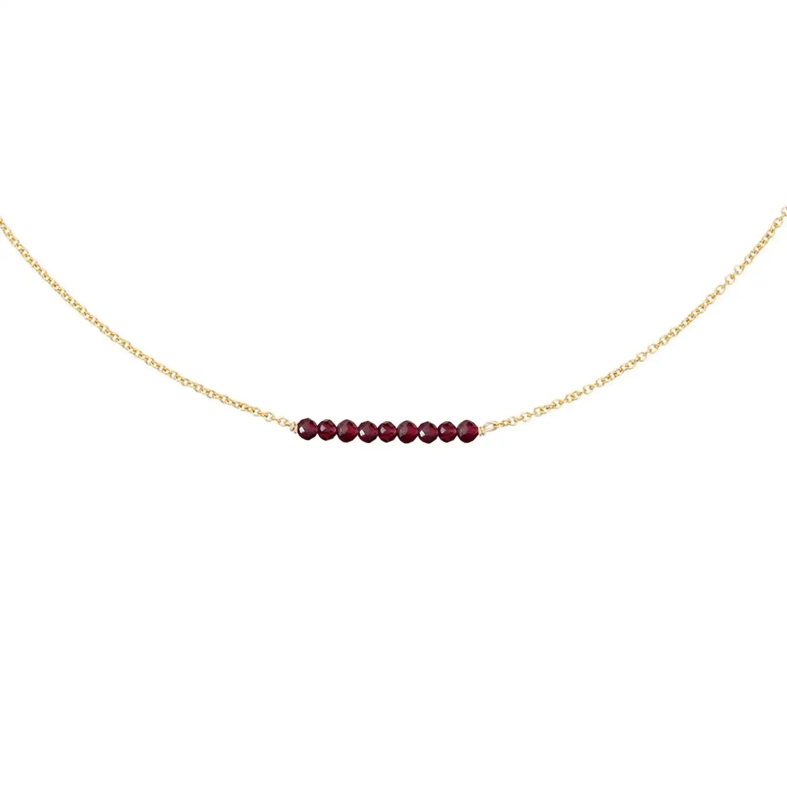 Dainty Beaded Garnet Bar NecklaceJanuary Birthstone Gift Necklace18K Gold Plated Delicate Handmade Faceted Garnet Stone Beads Bar Boho Necklaces for Women