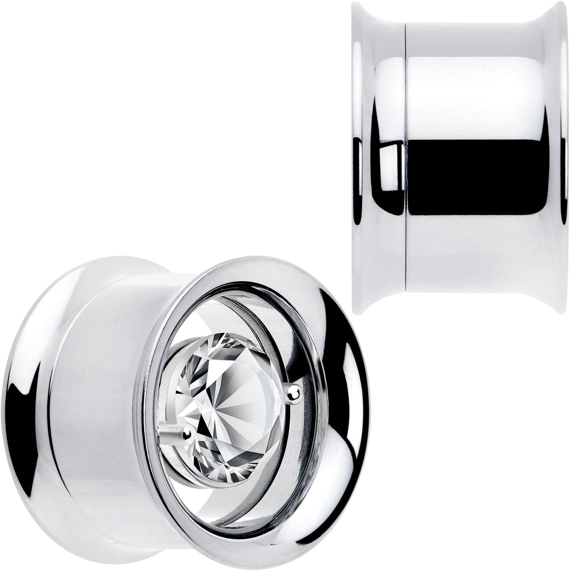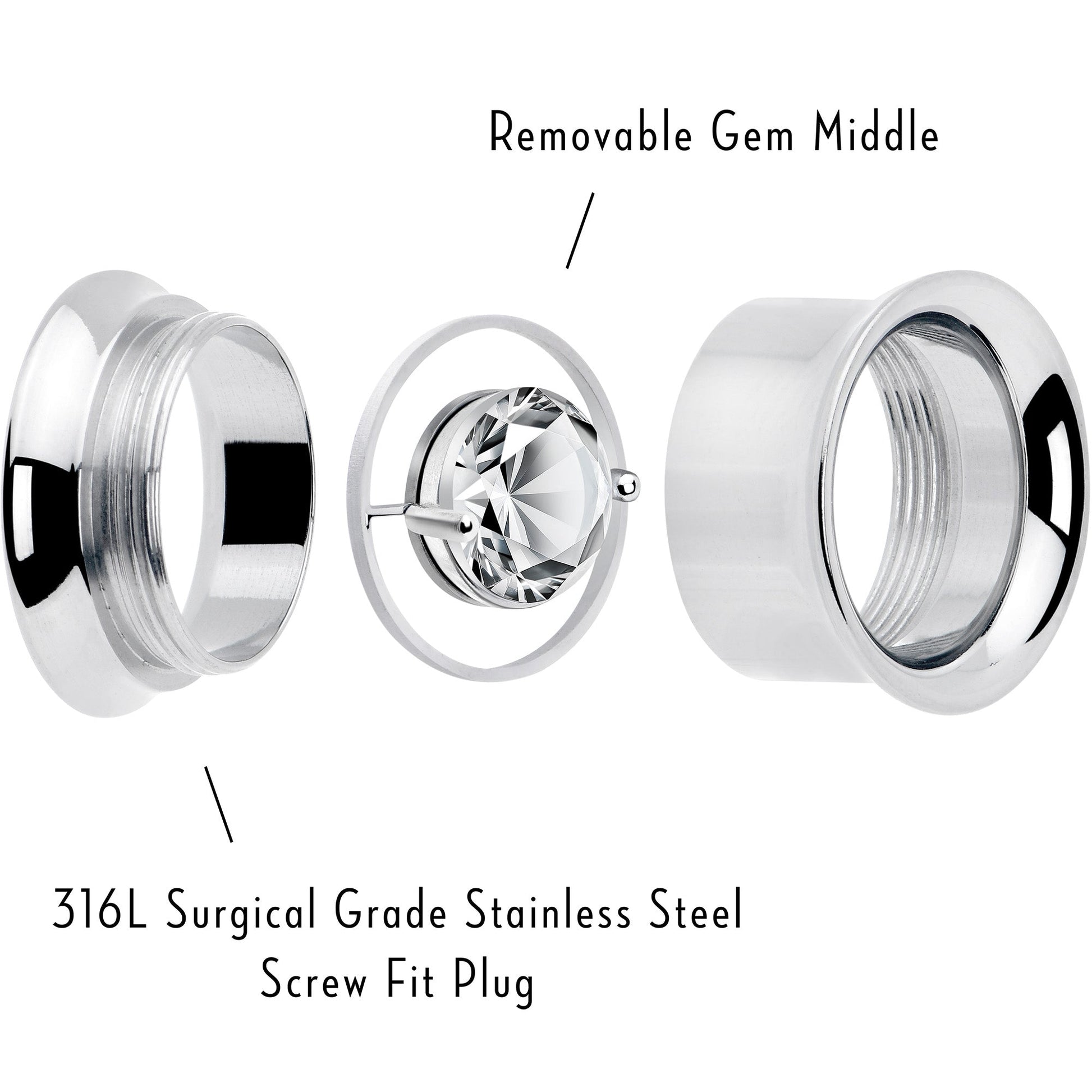 Get style that will leave you floating with these plugs for stretched lobes! They're made with 316L surgical grade stainless steel and feature a screw fit design for easy insertion and removal. Each one features a tunnel style with a color gem suspended in the center to give the appearance that it is floating. Classic style and eye-catching glamour combine for a set of ear gauges that will have you floating on cloud nine. Sold as a set of two.