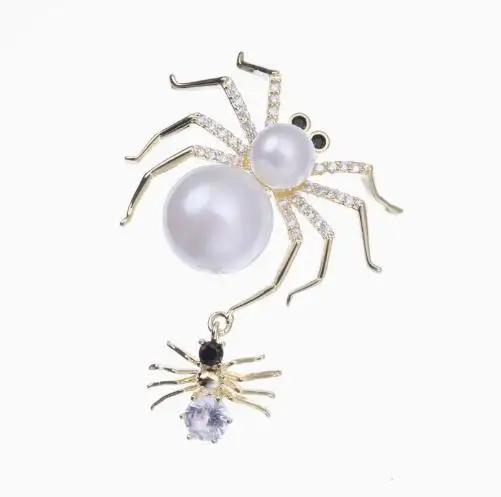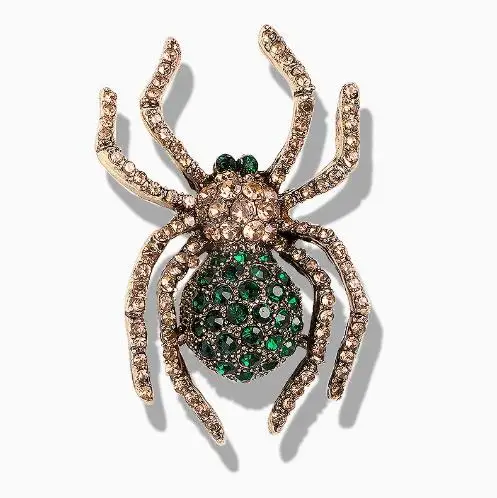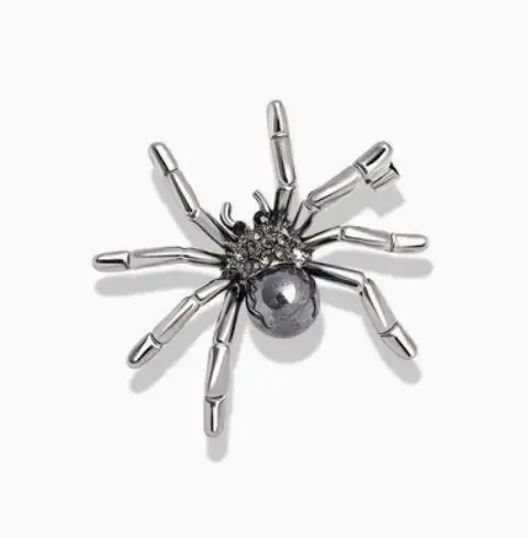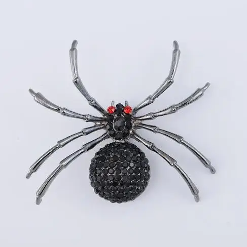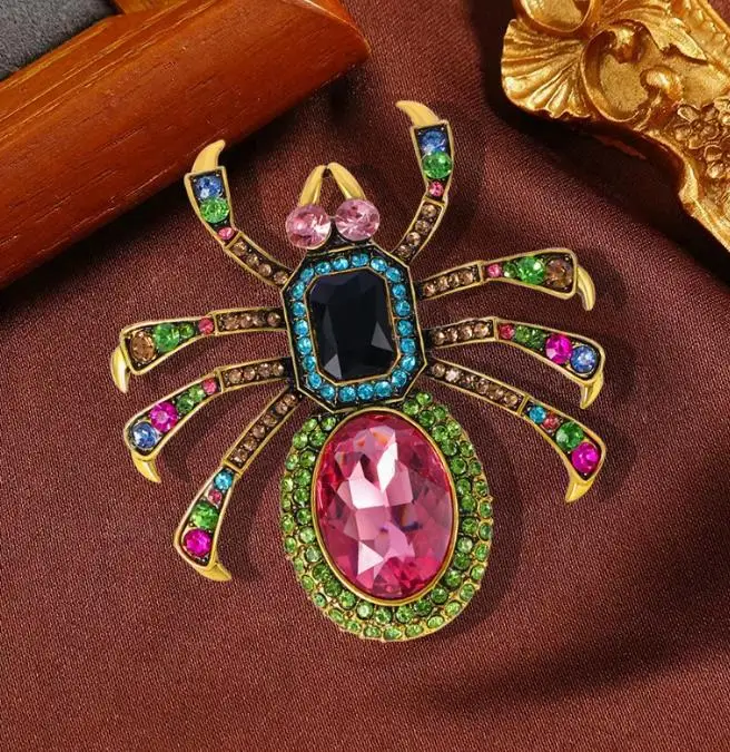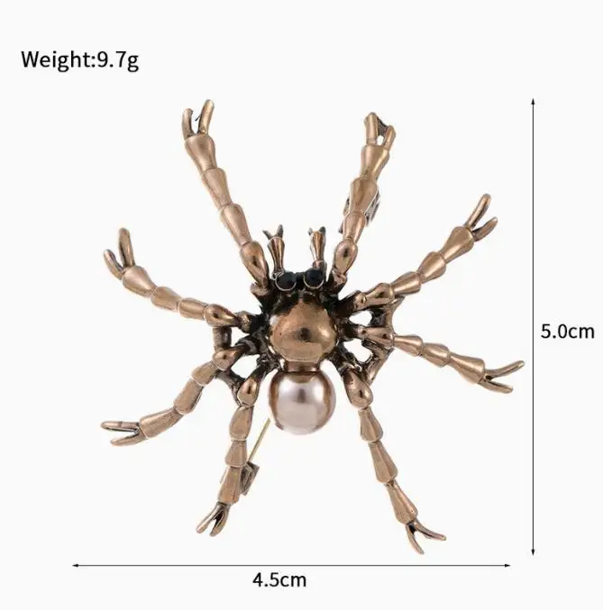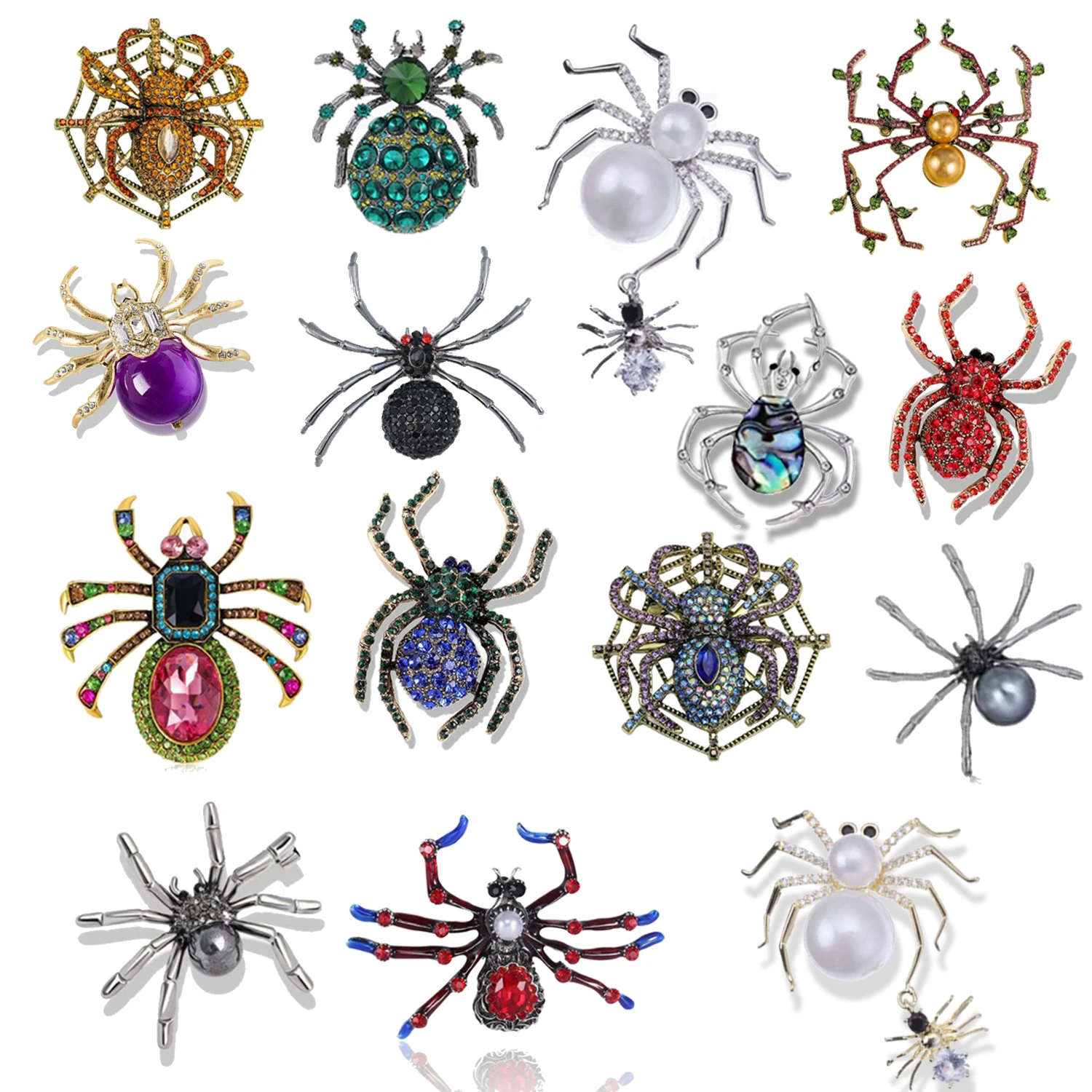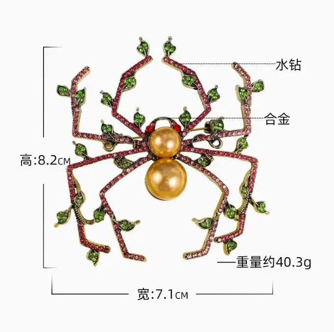Venom Stage Spider Brooch – Giant Crystal Punk Insect Pin with Pearl Shockwave