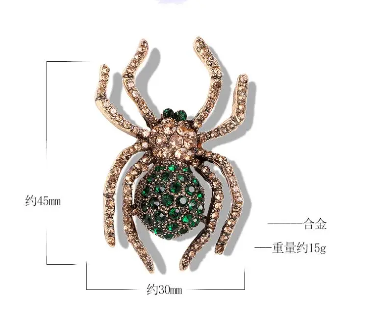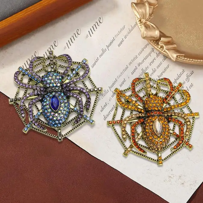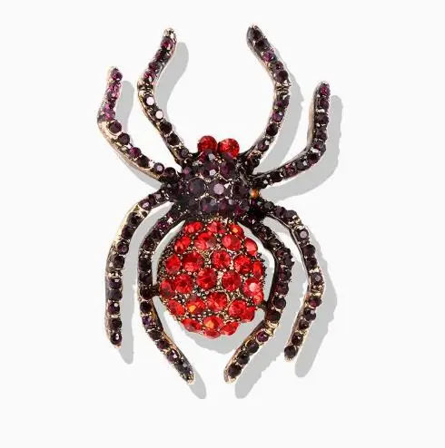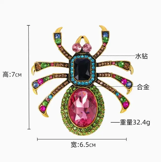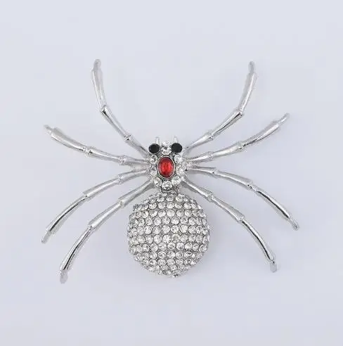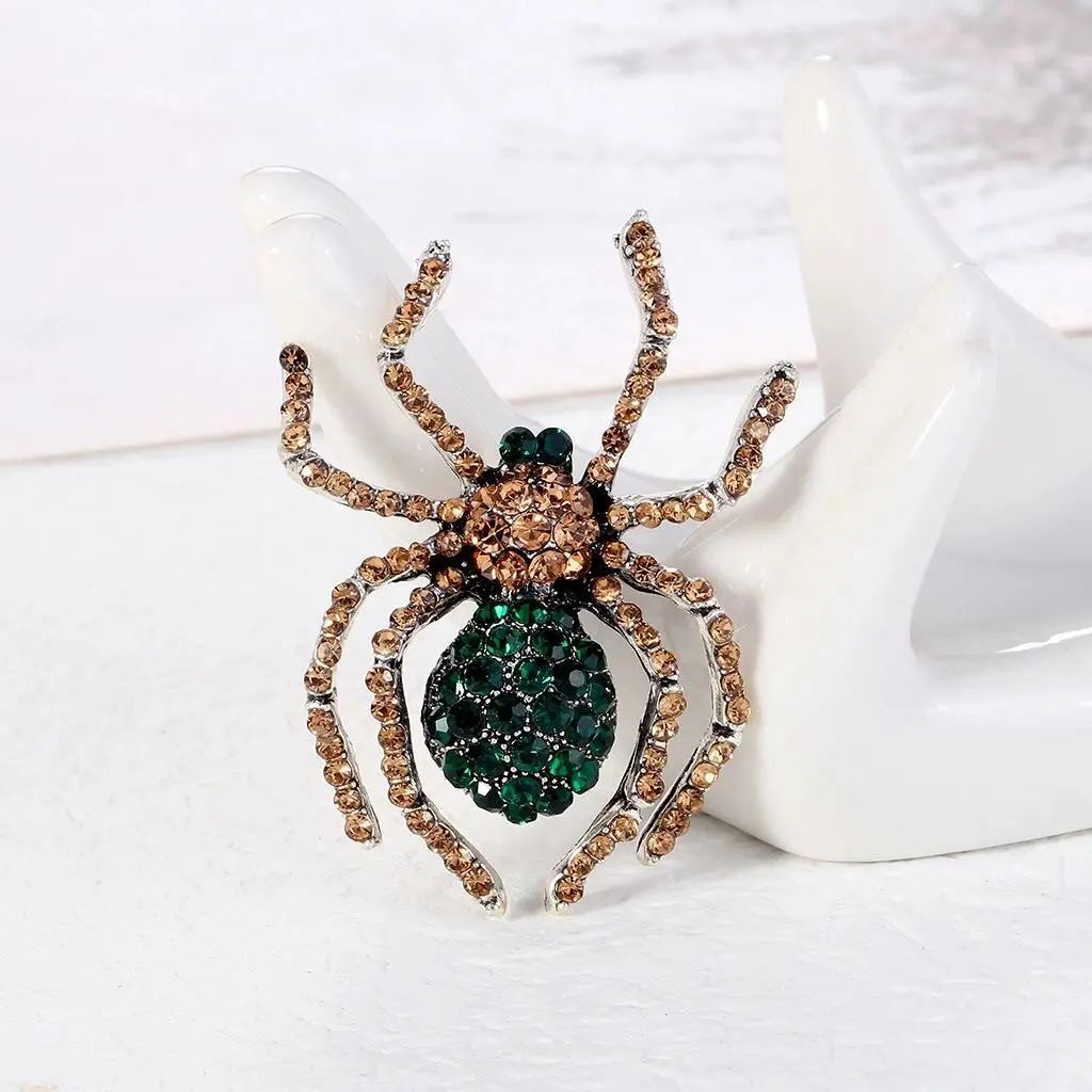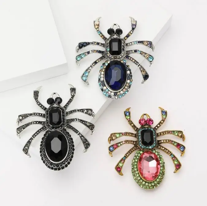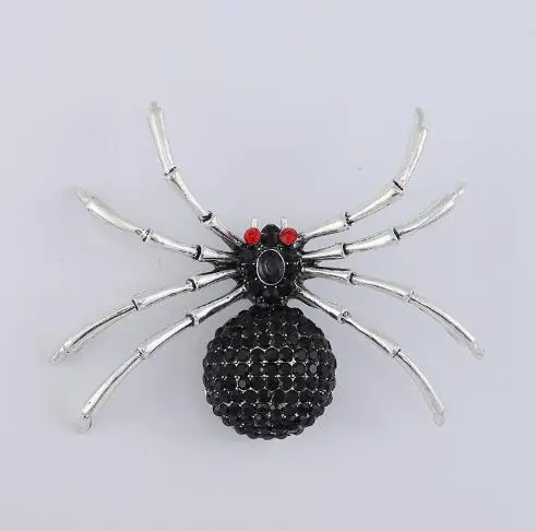 Venom Stage Spider Brooch – Giant Crystal Punk Insect Pin with Pearl Shockwave
