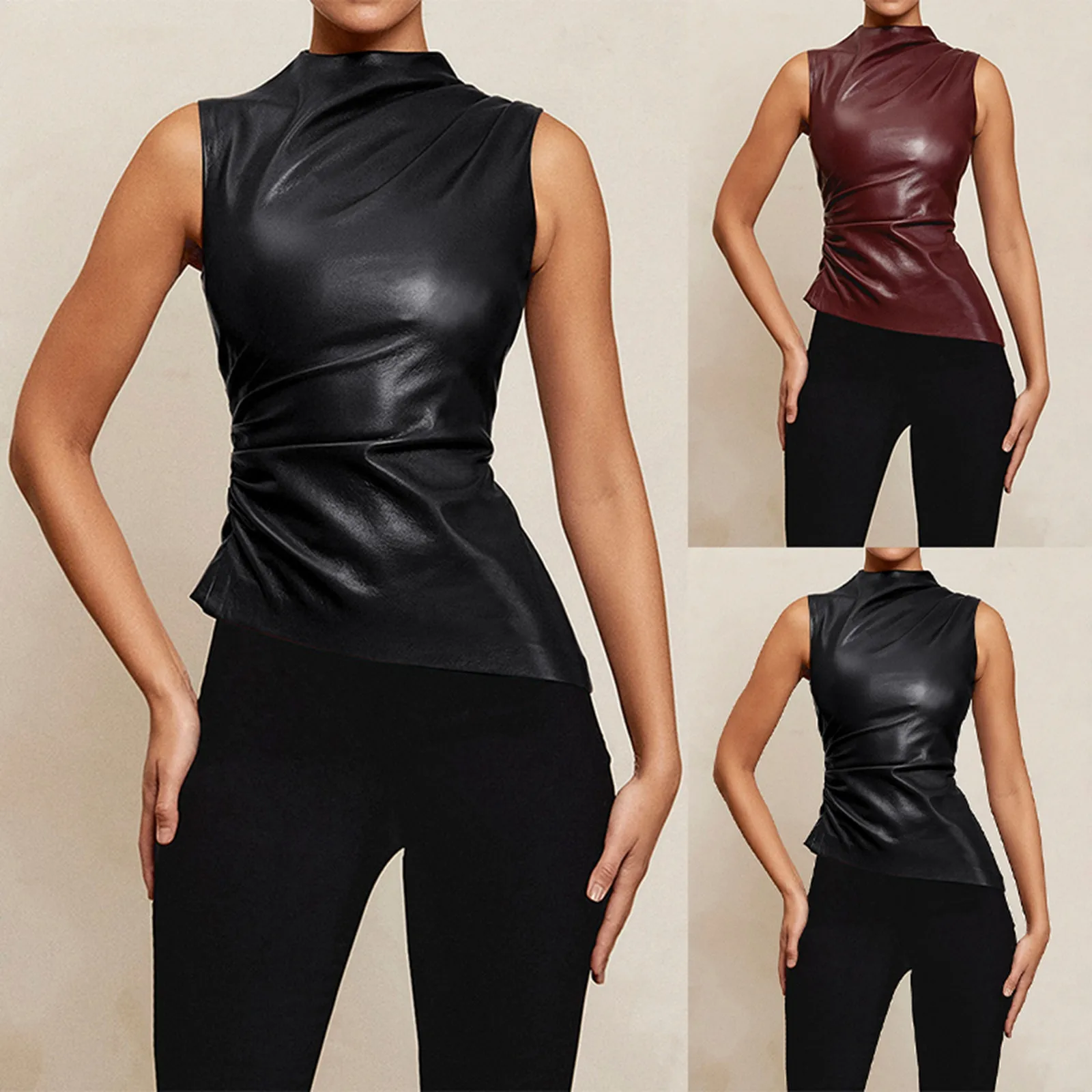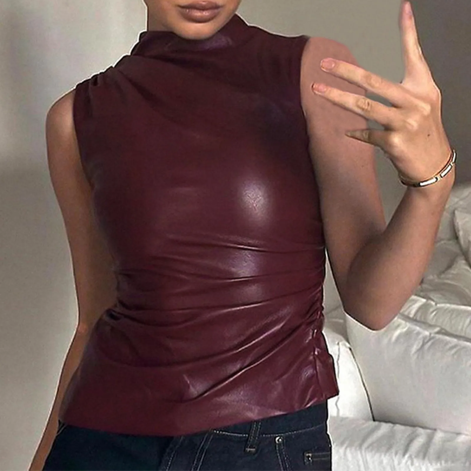 You walk in wearing the Midnight Voltage PU Leather Ruched Power Vest, and suddenly, it’s less “fashion show” and more boss battle entrance scene.