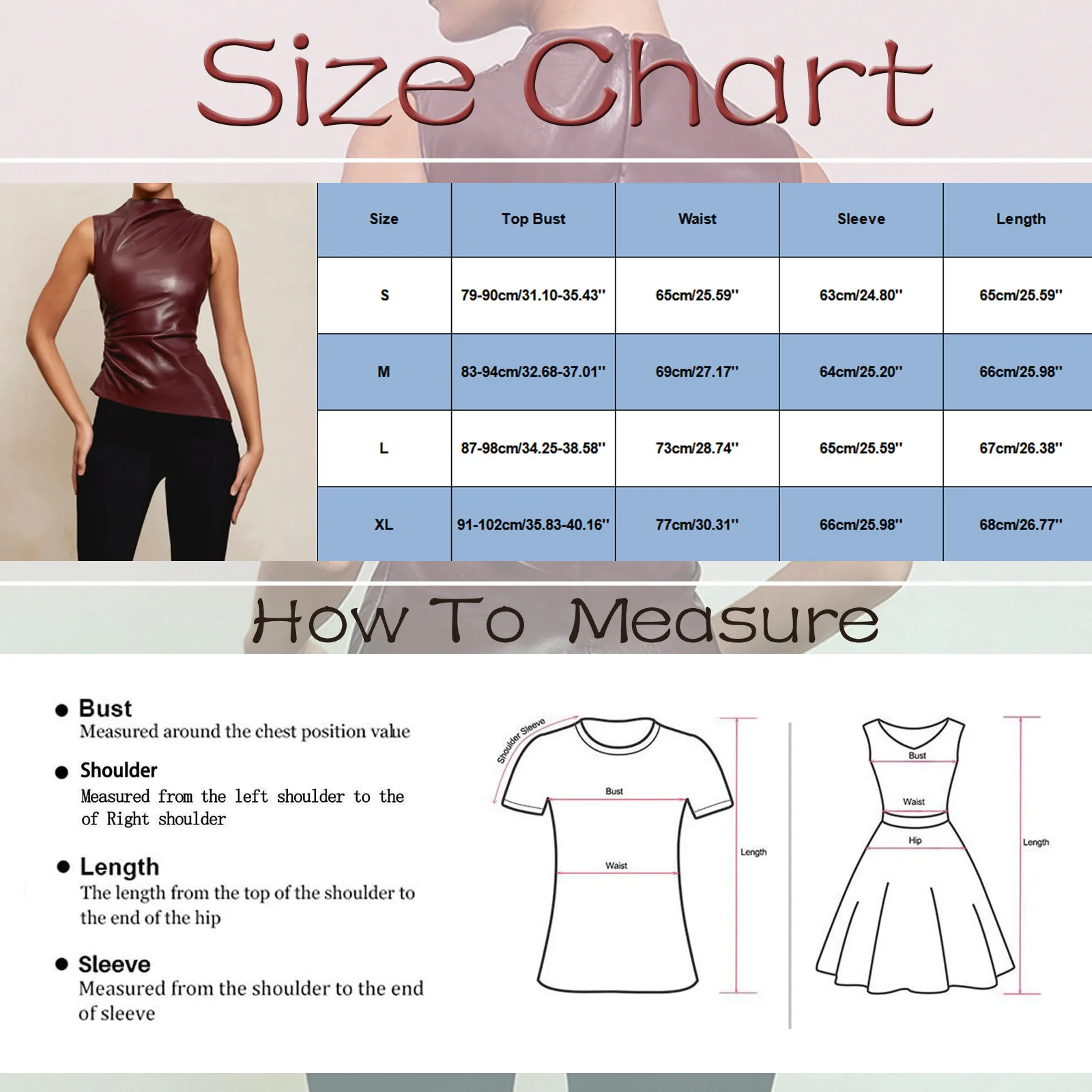 | Size | Top Bust | Waist | Sleeve | Length |