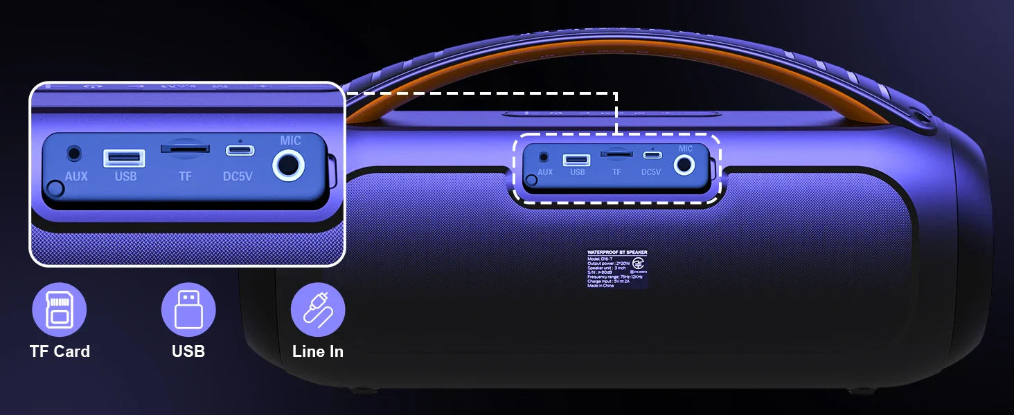 Portable Bluetooth Wireless Speaker, Loud Boombox Speaker with Subwoofer, Powerful Deep Bass Stereo Sound, IP65 Waterproof