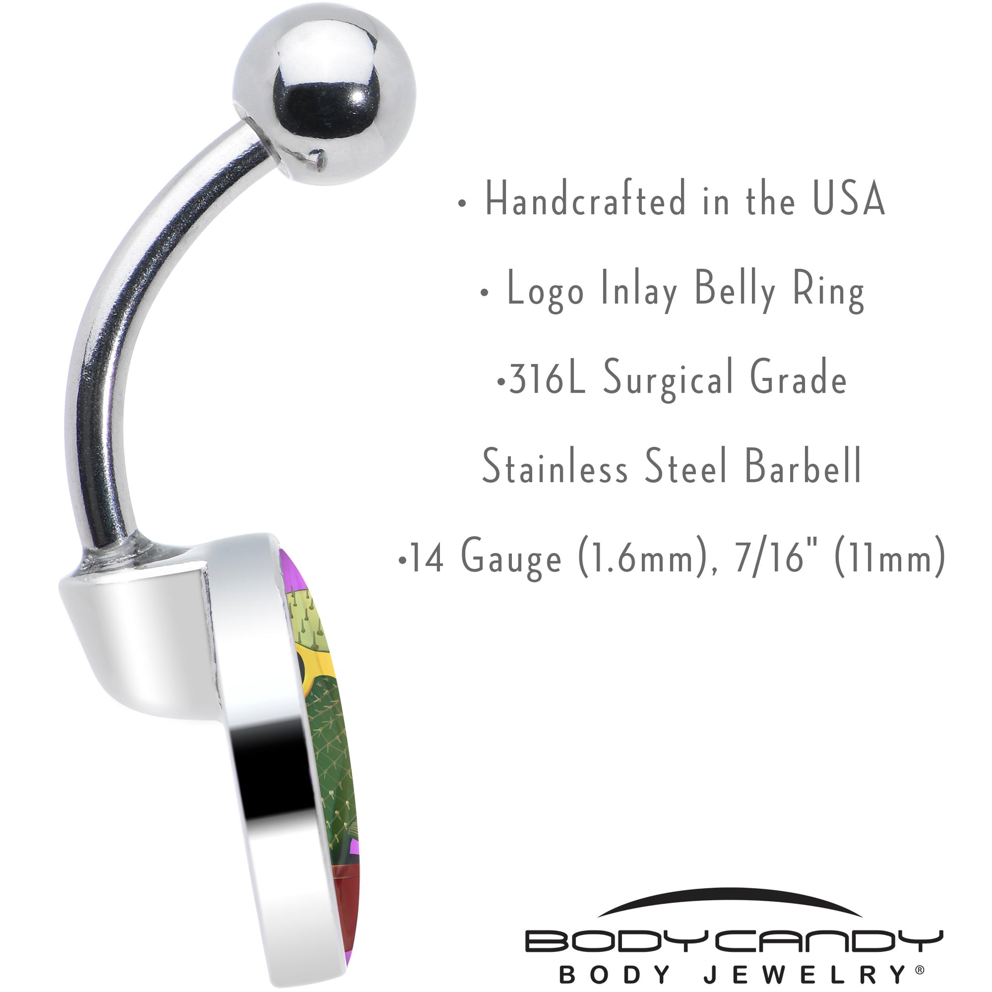 14 Gauge (1.6mm), 7/16" (11mm), 316L Surgical Grade Stainless Steel, Logo Inlay