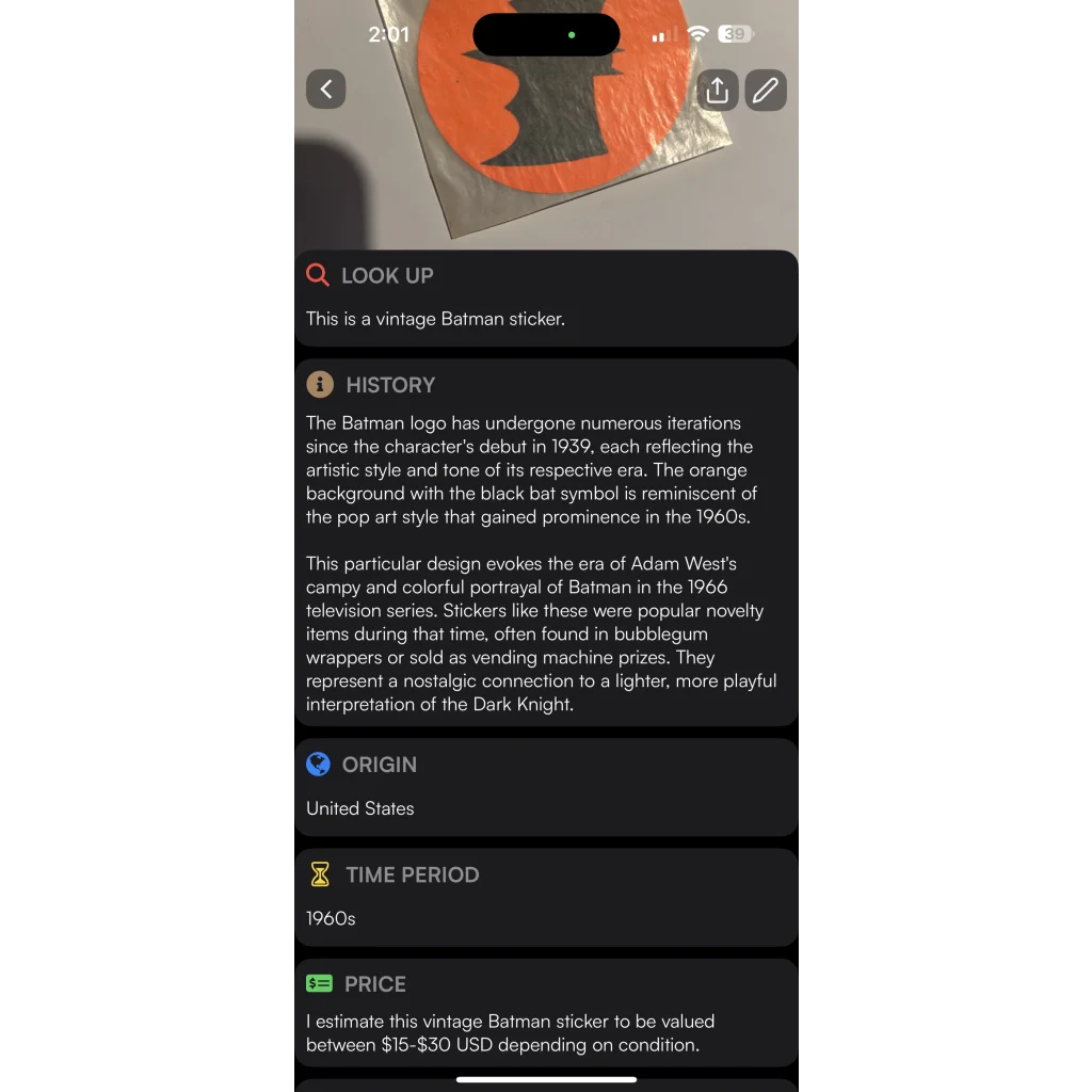 But wait, there's more! Thanks to the wonders of AI, we're throwing in a free Curio AI report with each sticker. This nifty little bonus gives you the inside scoop on the investment potential of these rare beauties. And let me tell you, the value of these vintage pieces is only going up, up, and away! Check out the pictures to see the Curio reports - they're practically identical for each color, proving just how special these stickers really are.