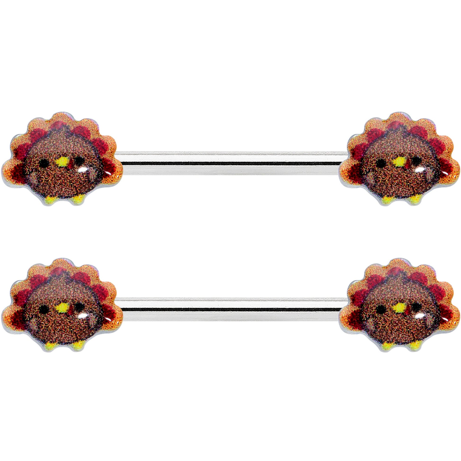 14G 9/16 Cute Colorful Turkeys Barbell Nipple Ring Set