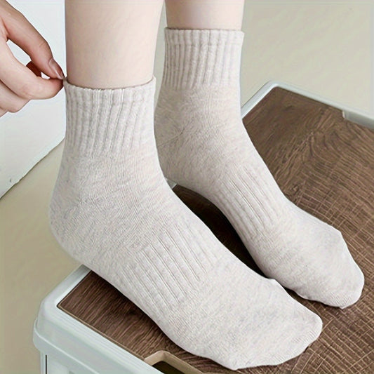 6 Pairs of Ultra-Soft Solid Ribbed Crew Socks for Women - Comfortable Everyday Wear, Breathable, Simple & Stylish, Assorted Colors, One Size Fits Most