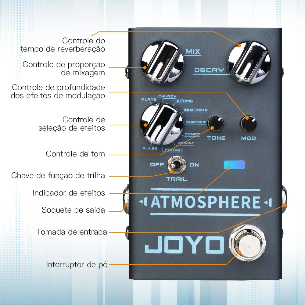 Joyo R-14 Atmosphere Reverb Pedal 9 Digital Reverbs With Modulation Depth Trail Function True Bypass For Guitar Vocals Drums Keys