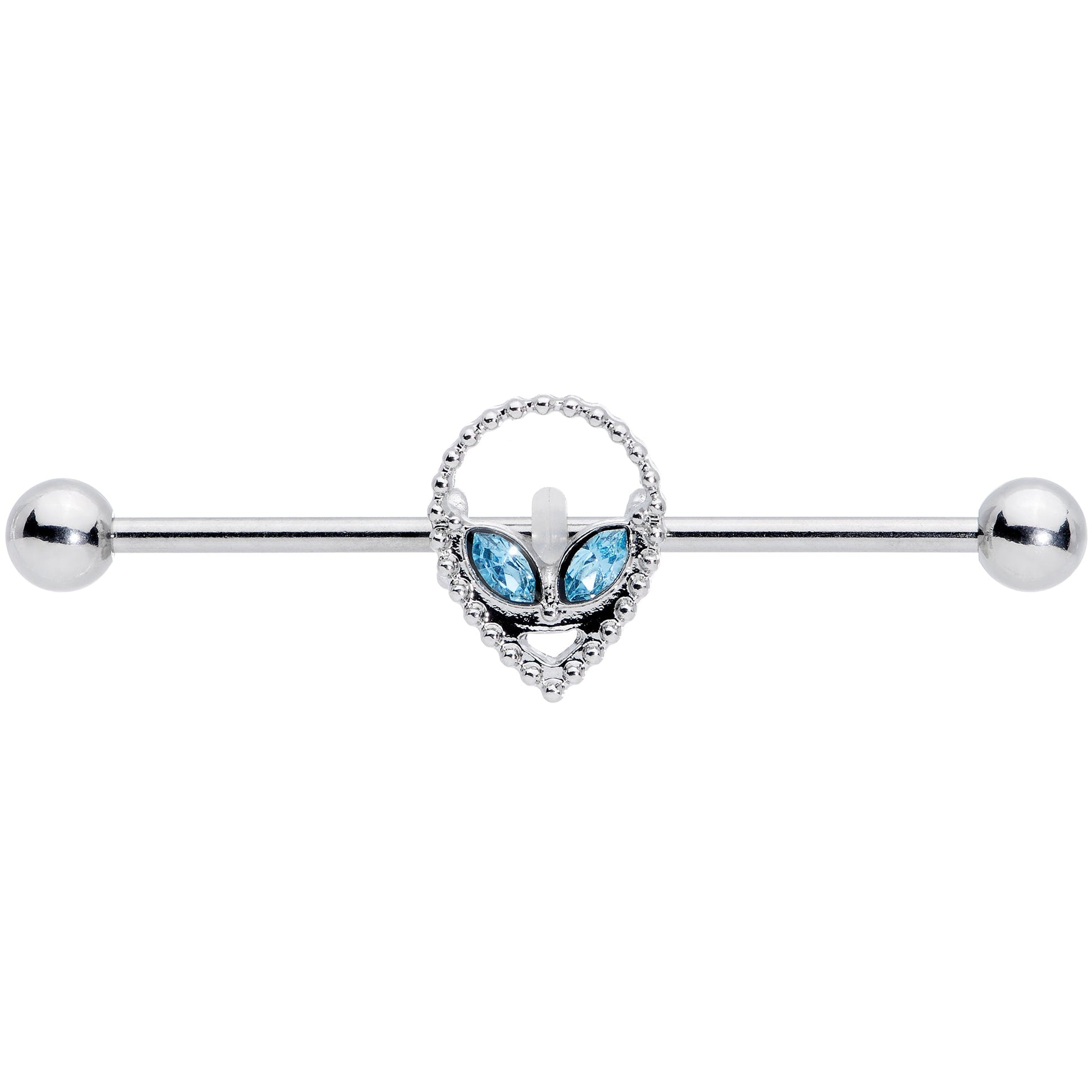 14G Aqua Gem Hollow Alien Industrial Barbell 38mm