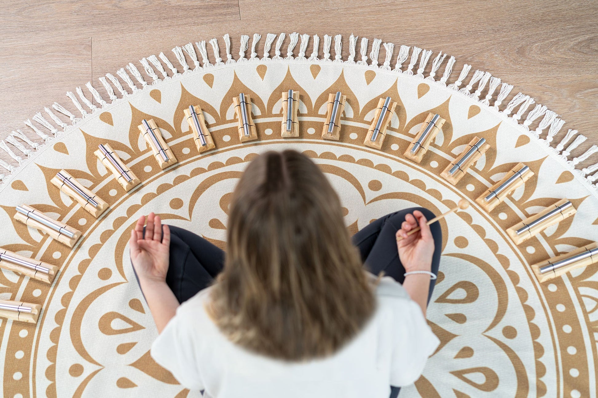 Position the chimes on the specified body regions for chakra healing or use them on their own to generate a harmonic soundscape.