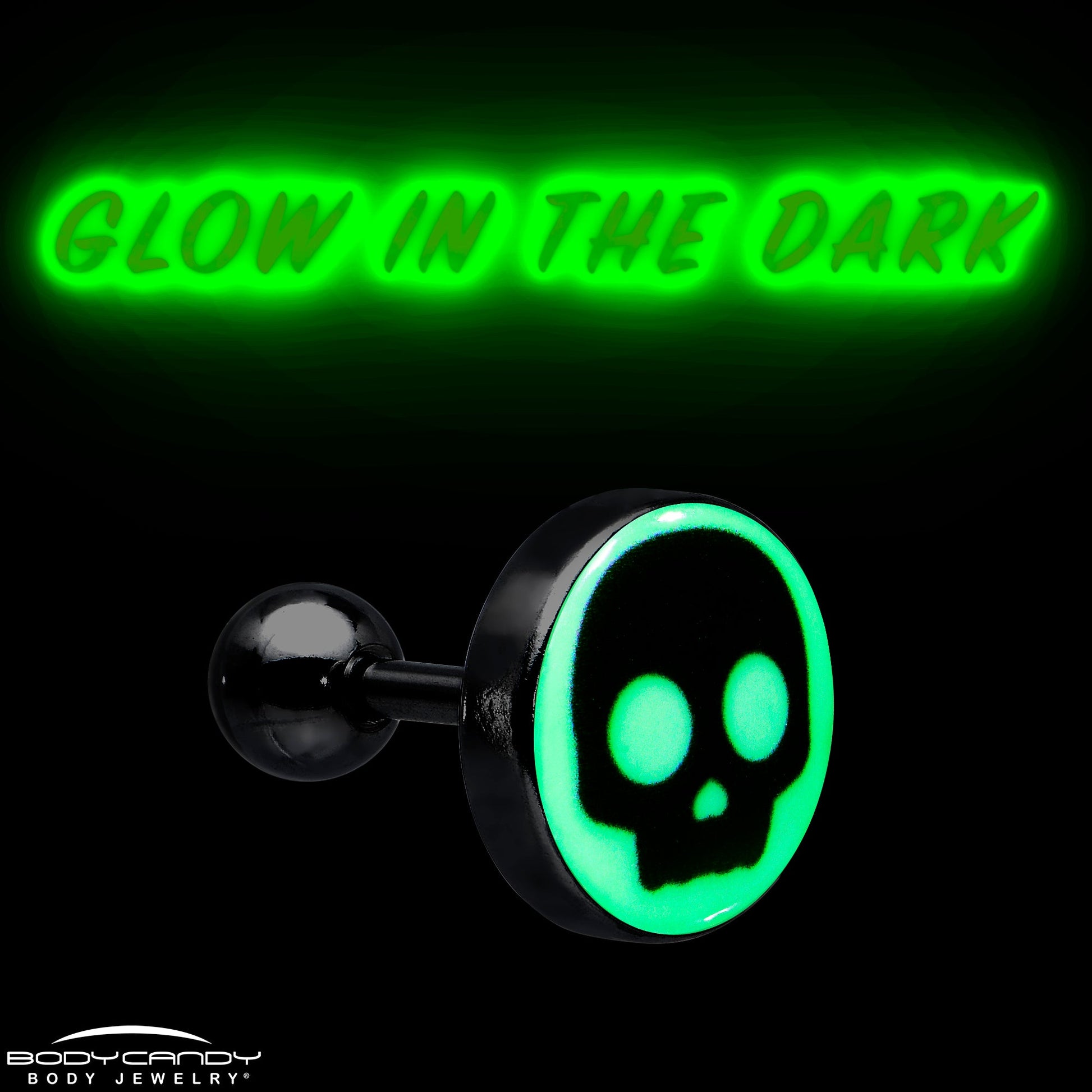 16 Gauge 1/4 Glow in the Dark Simple Skull Tragus Cartilage Earring