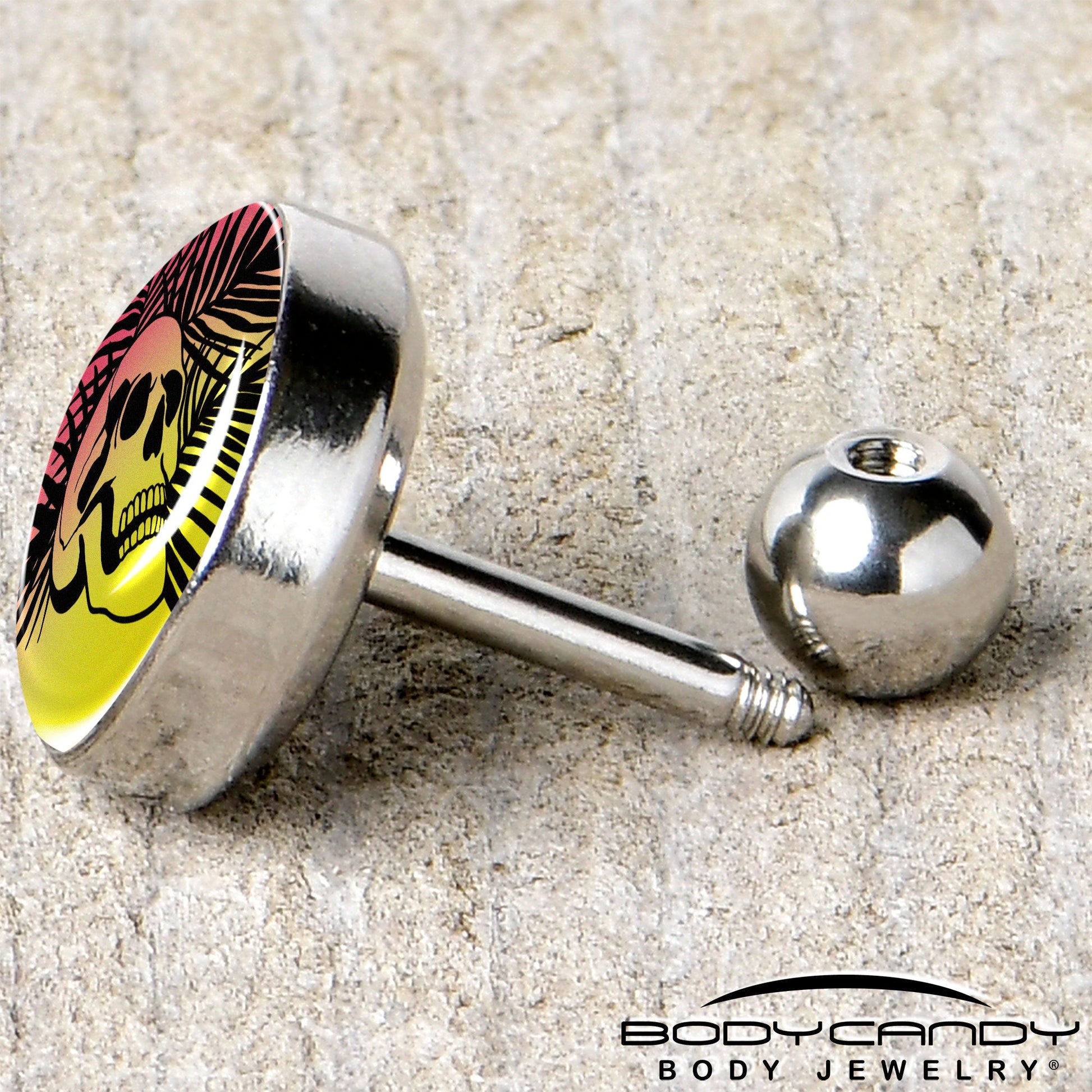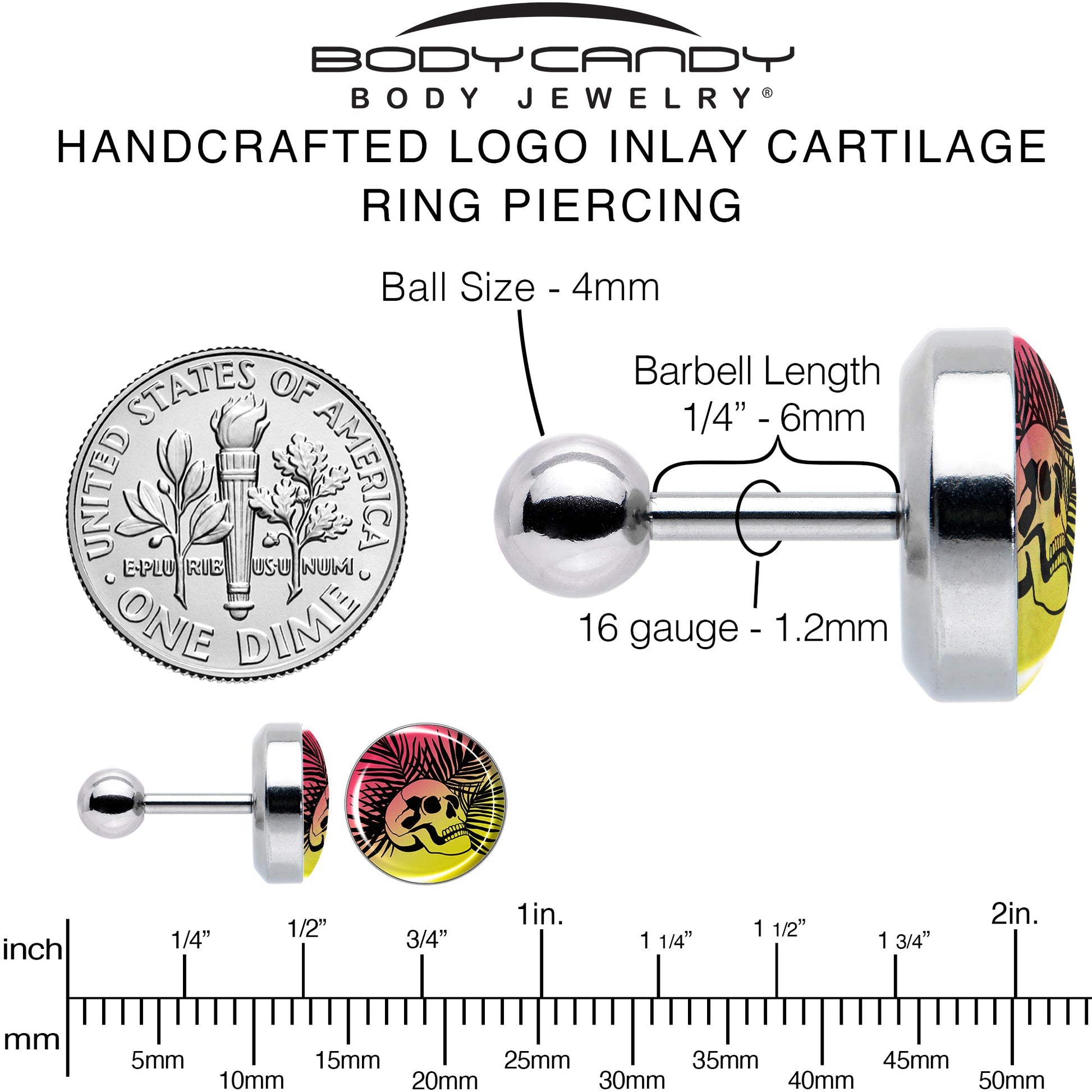 16 Gauge 1/4 Red Haze Sunset Skull and Palms Tragus Cartilage Earring