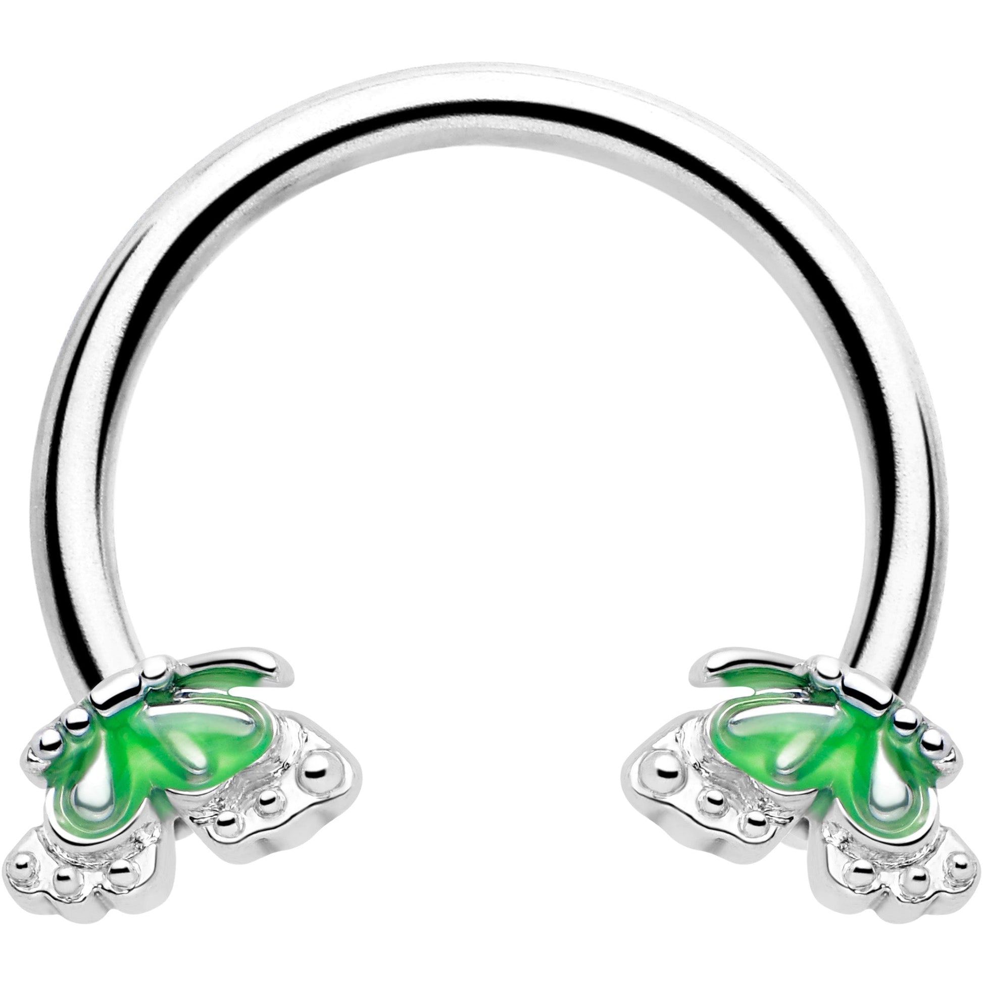 16 Gauge 3/8 Butterfly Green Splash Horseshoe Circular Barbell