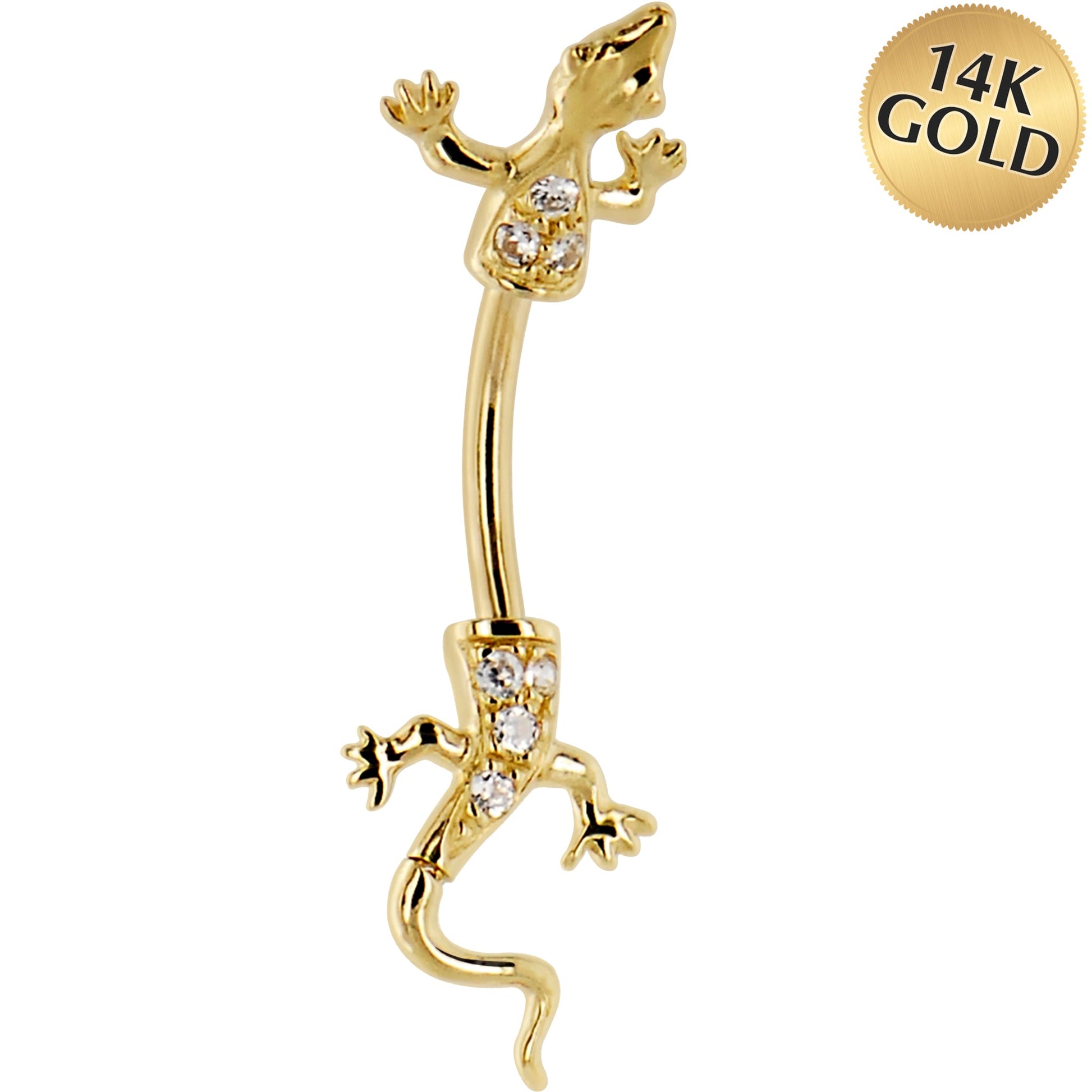 14KT Gold Lizard Belly Ring. 14KT Solid Gold Belly Ring. Solid Gold Body Jewelry with Genuine Cubic Zirconia Add Bodycandy body piercing jewelry at wholesale prices to your collection today!