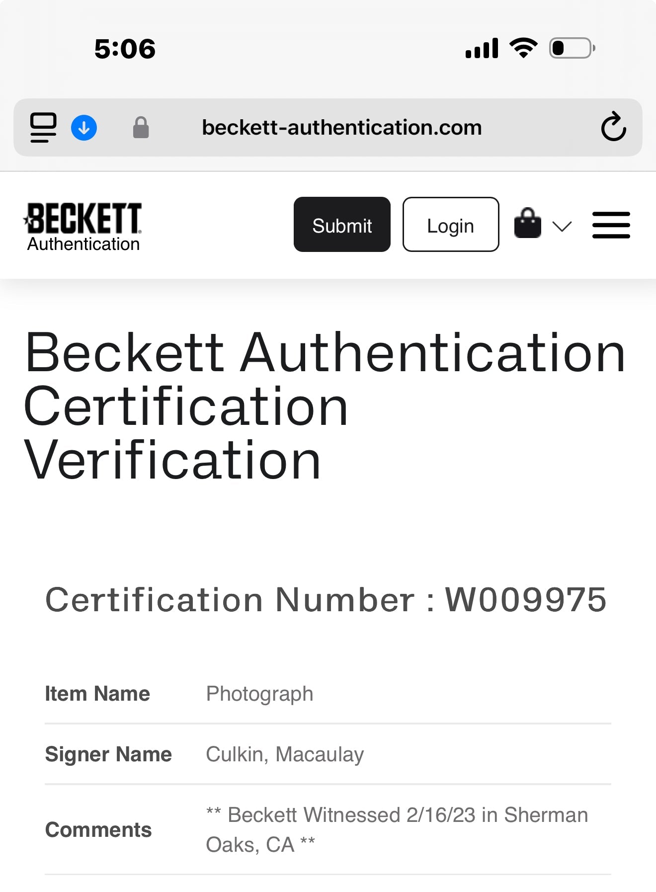 The product is a framed 11x17 poster of the movie "Richie Rich" signed by Macaulay Culkin, with authentication witnessed by Beckett Authentication. The autograph is confirmed to be original and comes with a certificate of authenticity on the back of the framed photo, however the coa is not visible due to the sticker placement by Beckett.