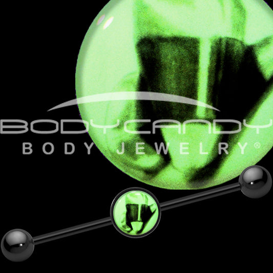 Custom Glow in the Dark Personalized Industrial Barbell in Black Titanium