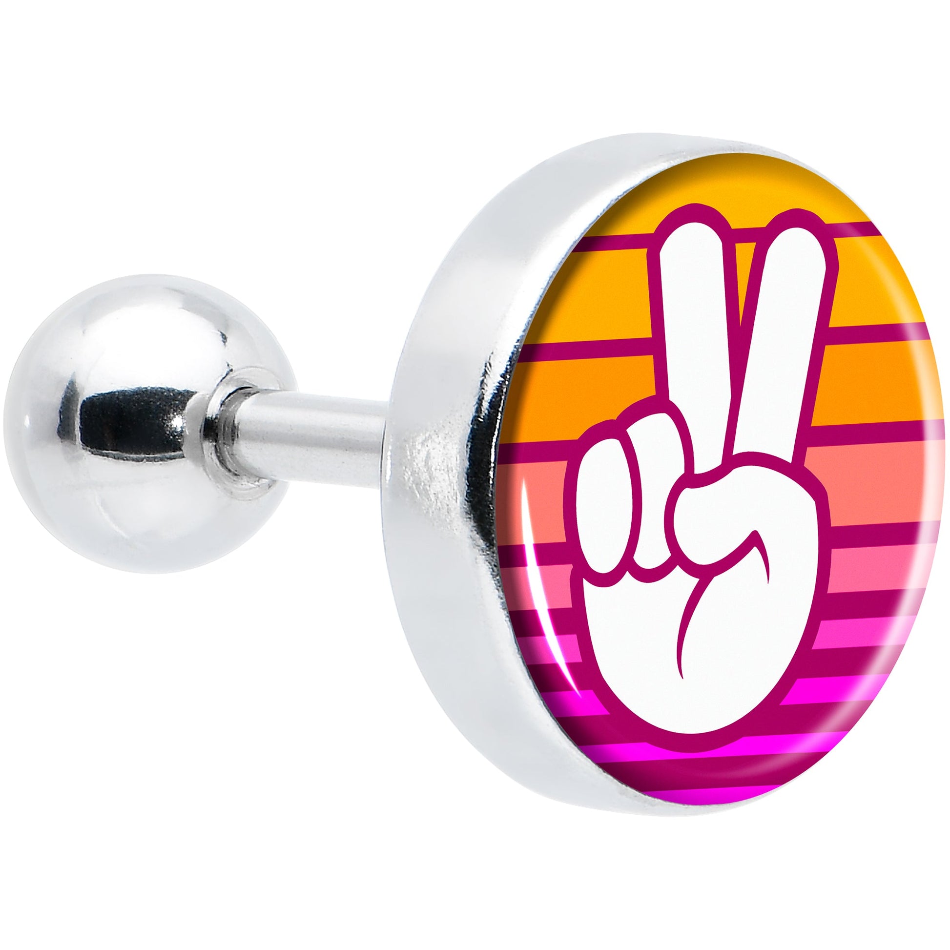 16 Gauge 1/4 Retro Stripes Peace Sign Fingers Cartilage Tragus Earring