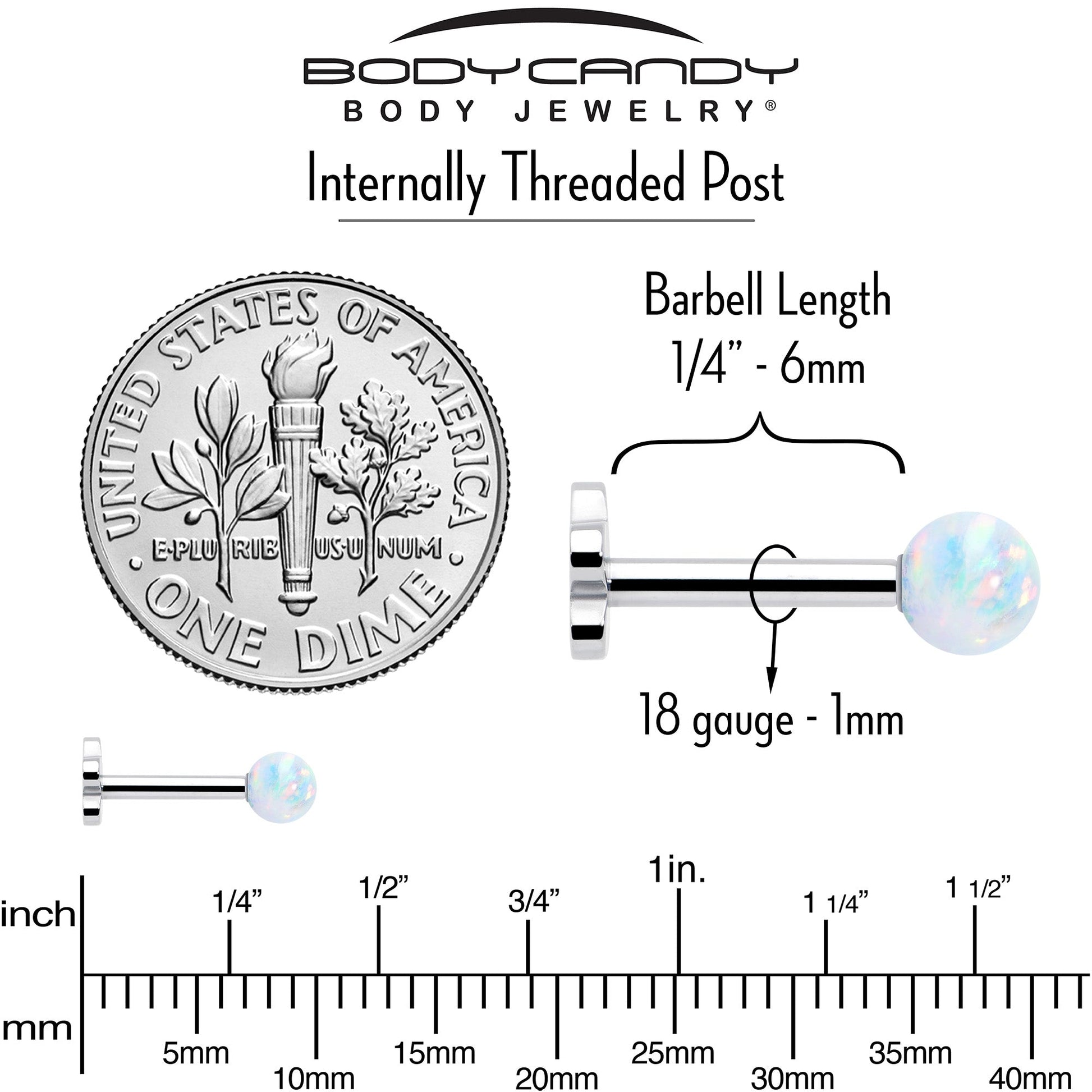 18 Gauge (1mm), 1/4" (6mm), ASTM F-136 Titanium Straight Post, Externally Threaded Synthetic Opal Ball, Internally Threaded Post, Reversible Design