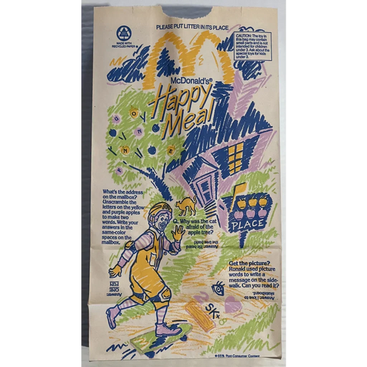 Rare 1991 McDonald's Happy Meal Bag with Classic Characters
