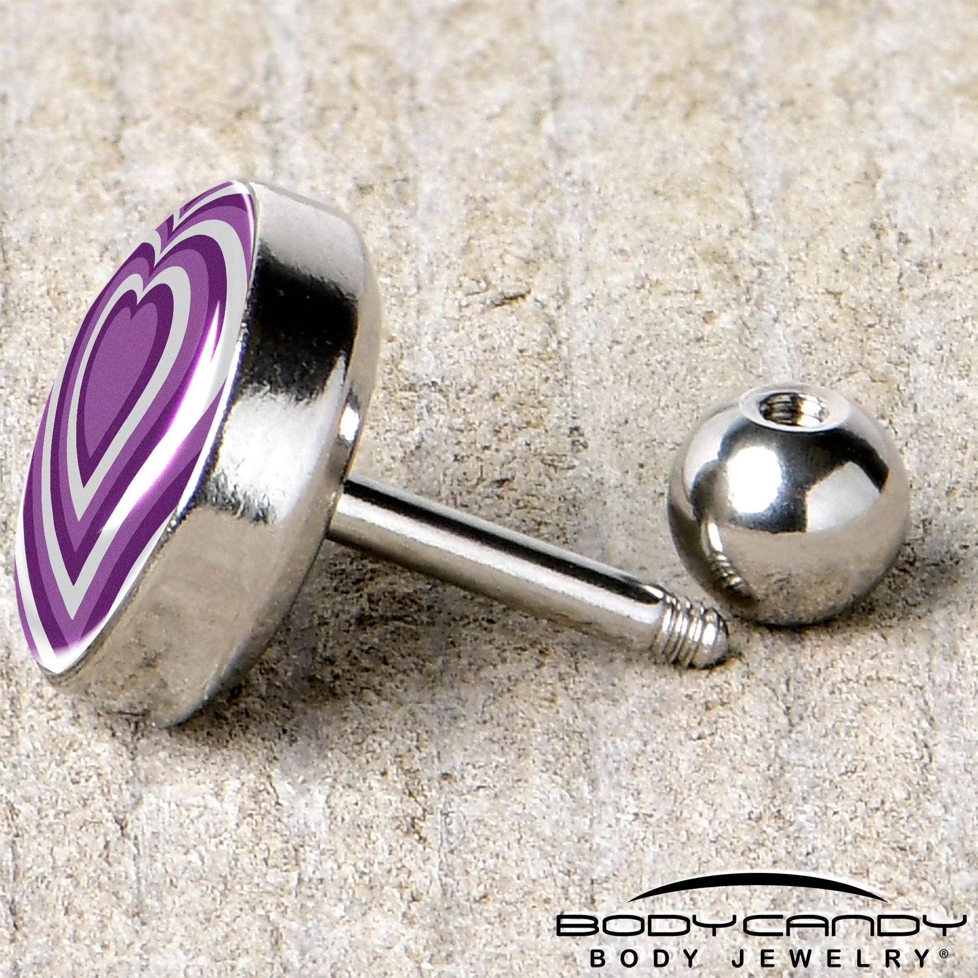 16G 1/4 Purple Retro Heart Tragus Cartilage Earring by Onyx O