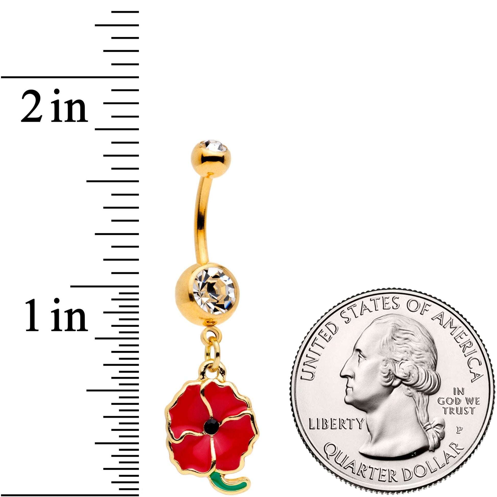 Poppys are said to be for remembrance but who could ever forget you in this gorgeous dangle navel ring? Made of a 14 gauge gold tone PVD over durable 316L surgical grade stainless steel curved barbell, this is one tough flower. But with a length of 3/8" people will notice as you as well as your beautiful belly ring and they won't just forget you after!Specifications