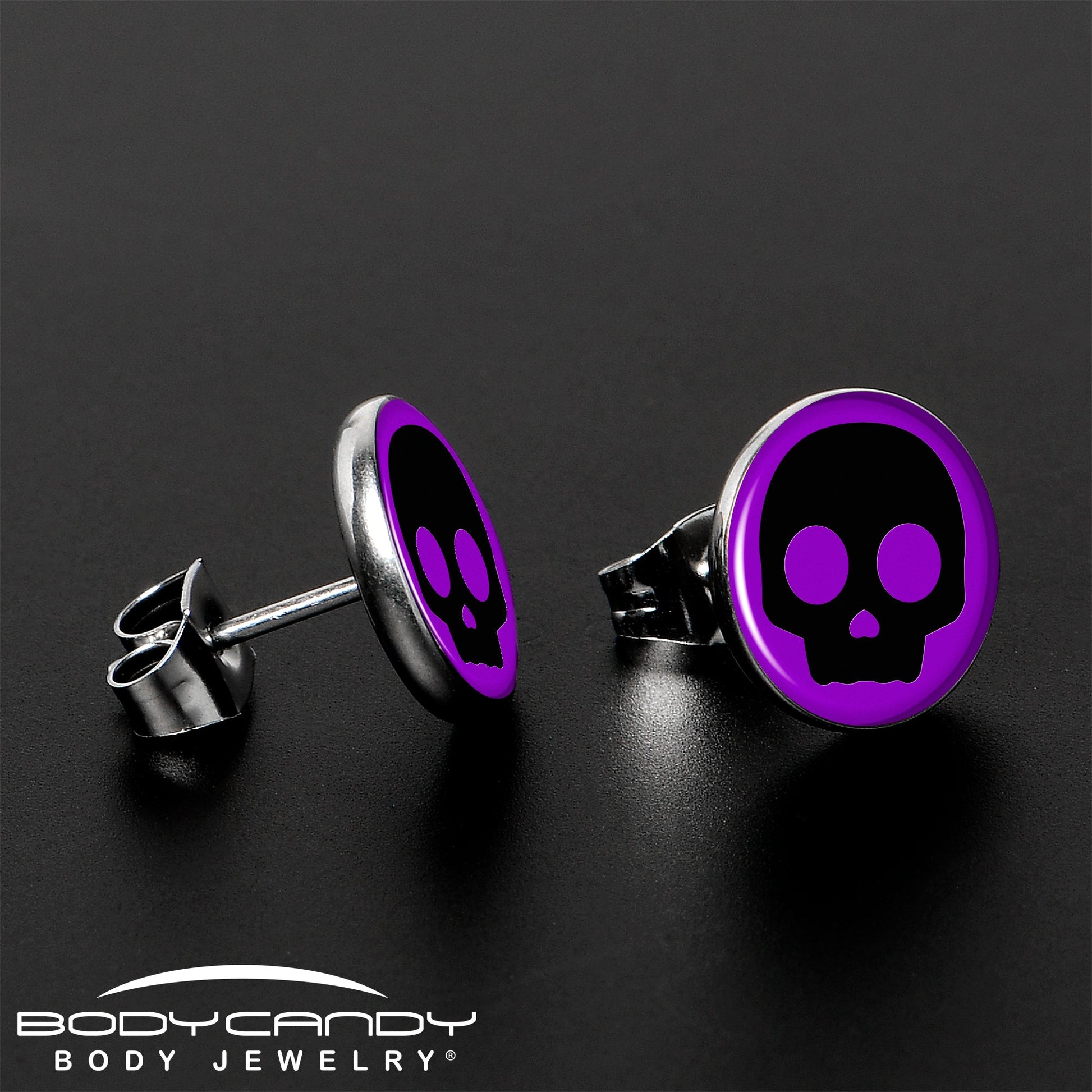 Purple Black Simple Skull Stud Earrings by Onyx O