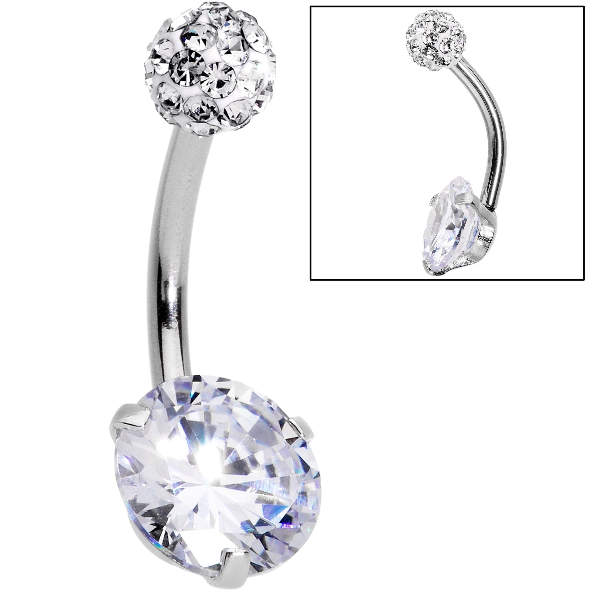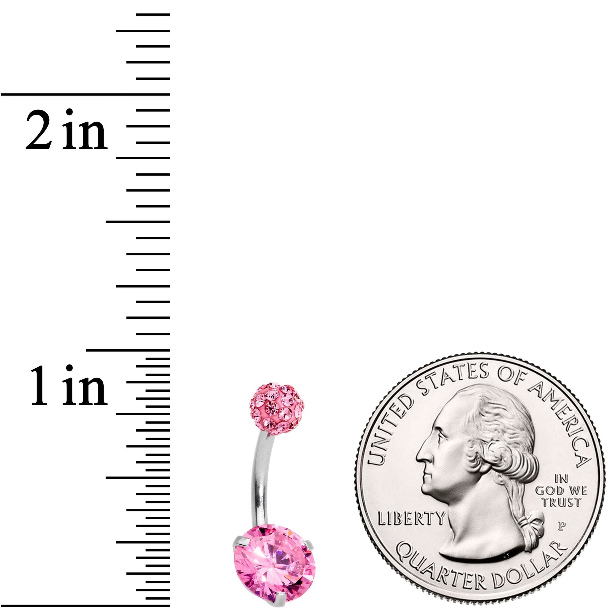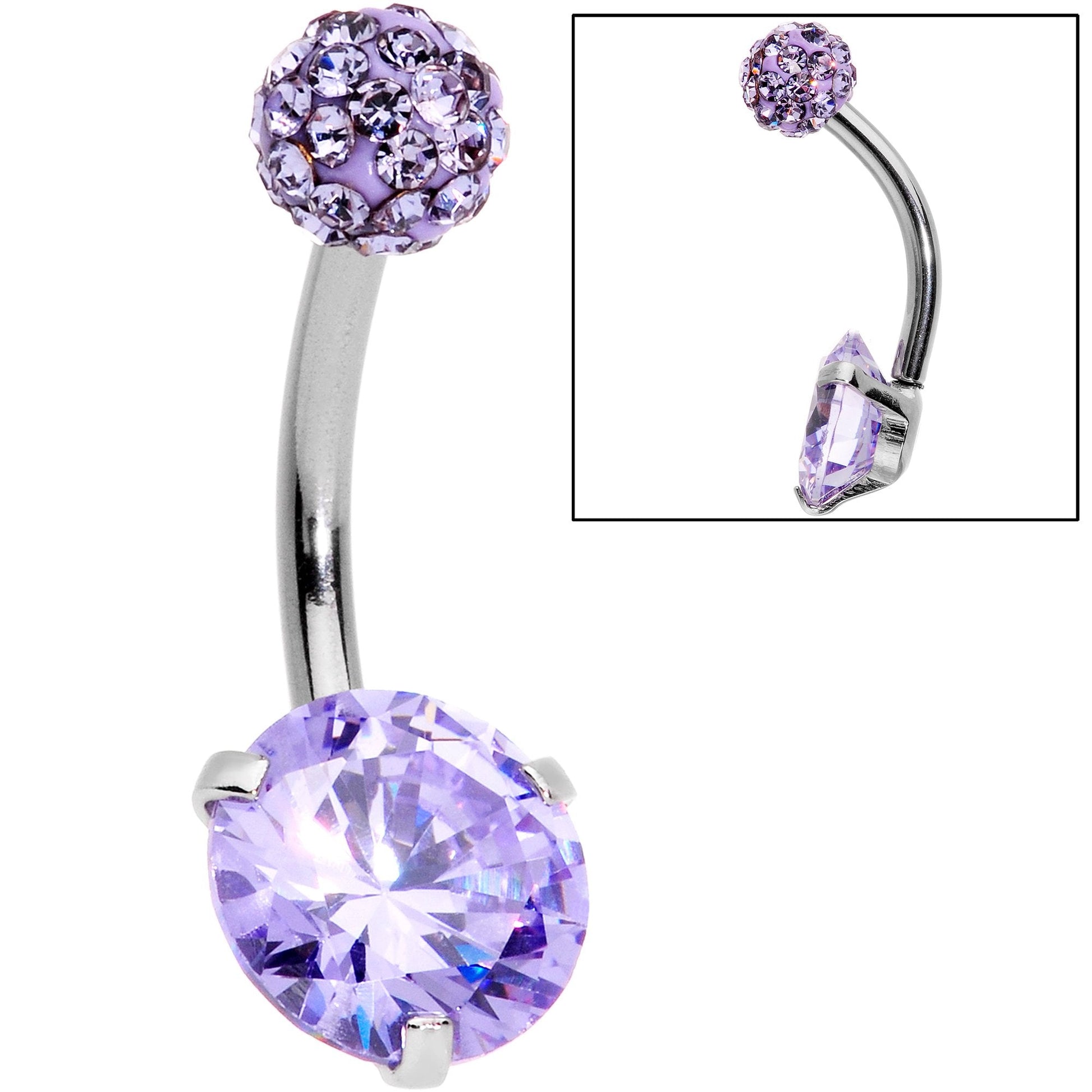 Three navel rings, three different colors, three times the glamour!! These 14 gauge belly button rings are made with 7/16" durable 316L surgical grade stainless steel curved barbell. They feature a large bottom gem and a 5mm top ball end that's encrusted with numerous matching small gems. The set includes clear, pink, and purple, for the ultimate in a girly-girl belly ring selection. Feminine glamour to match your every mood! Sold as a set of three.Specifications