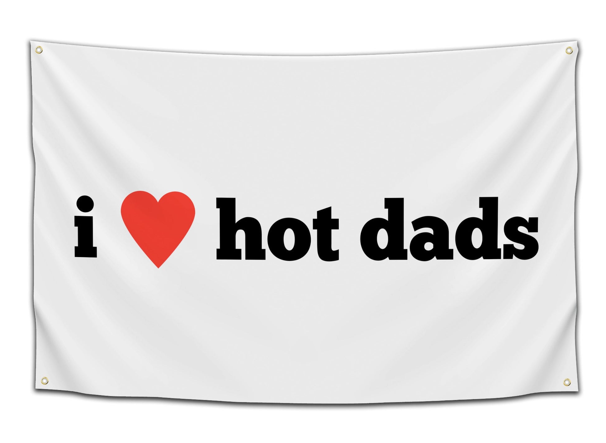 Our “i ❤️ hot dads” flag adds hilarious heat to any room or party.