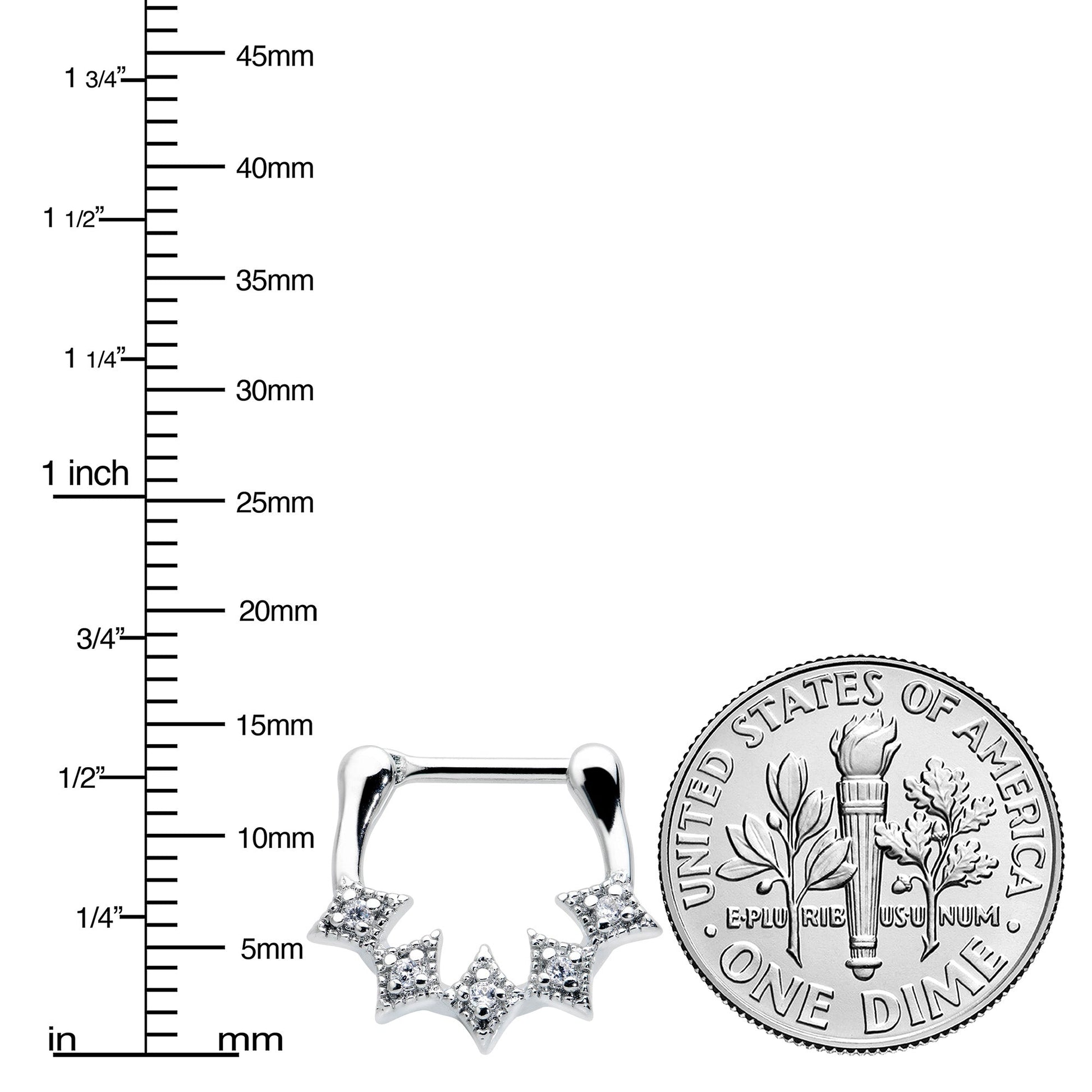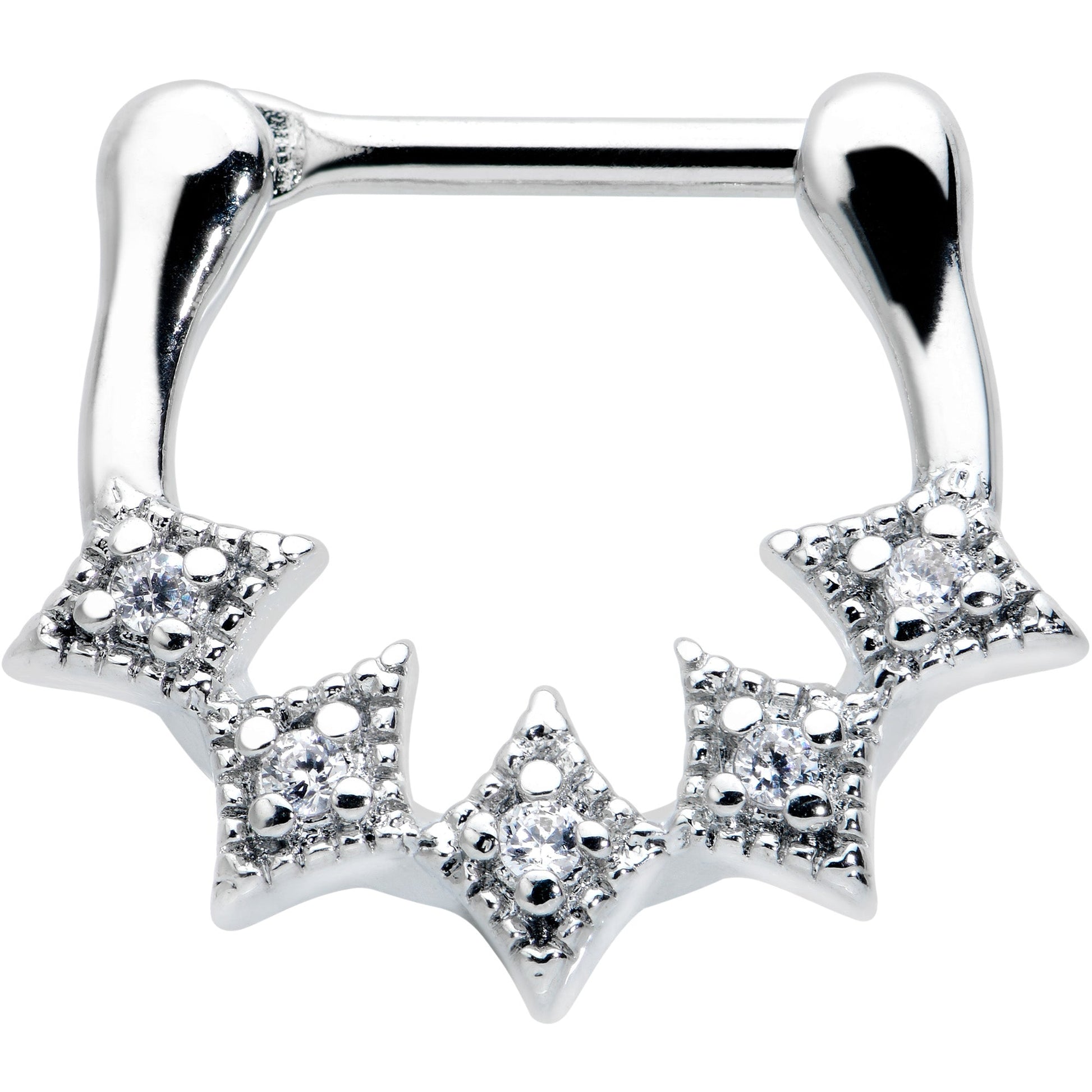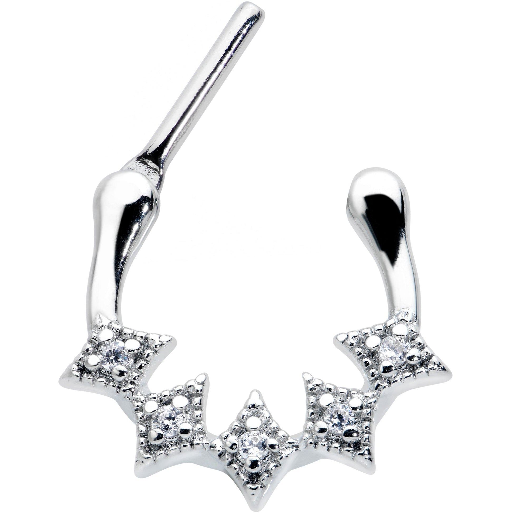 Why rock a single rhombus when you can rock a whole row of them with 16 gauge cartilage ring! It's made with a 10mm durable 316L surgical grade stainless steel hinged straight barbell. It features a row of textured rhombus charms, each with a small clear gem set at its center. The ring also features a hinged, clicker design that makes insertion and removal a snap. You can even rock it in multiple piercings including the septum, helix, and tragus. So, get ready to rock a whole of rhombuses in your cartilage piercings - you'll love how great they look!