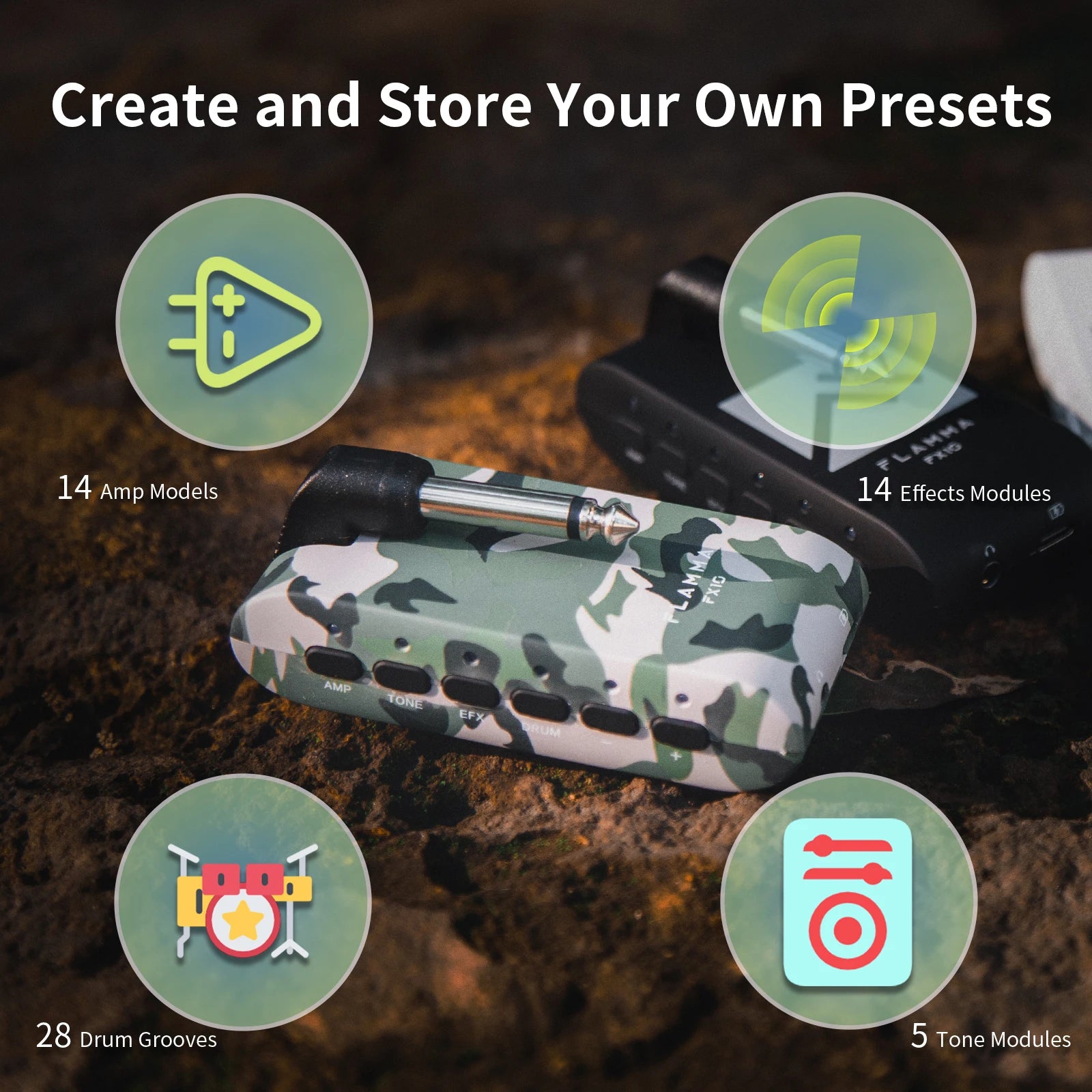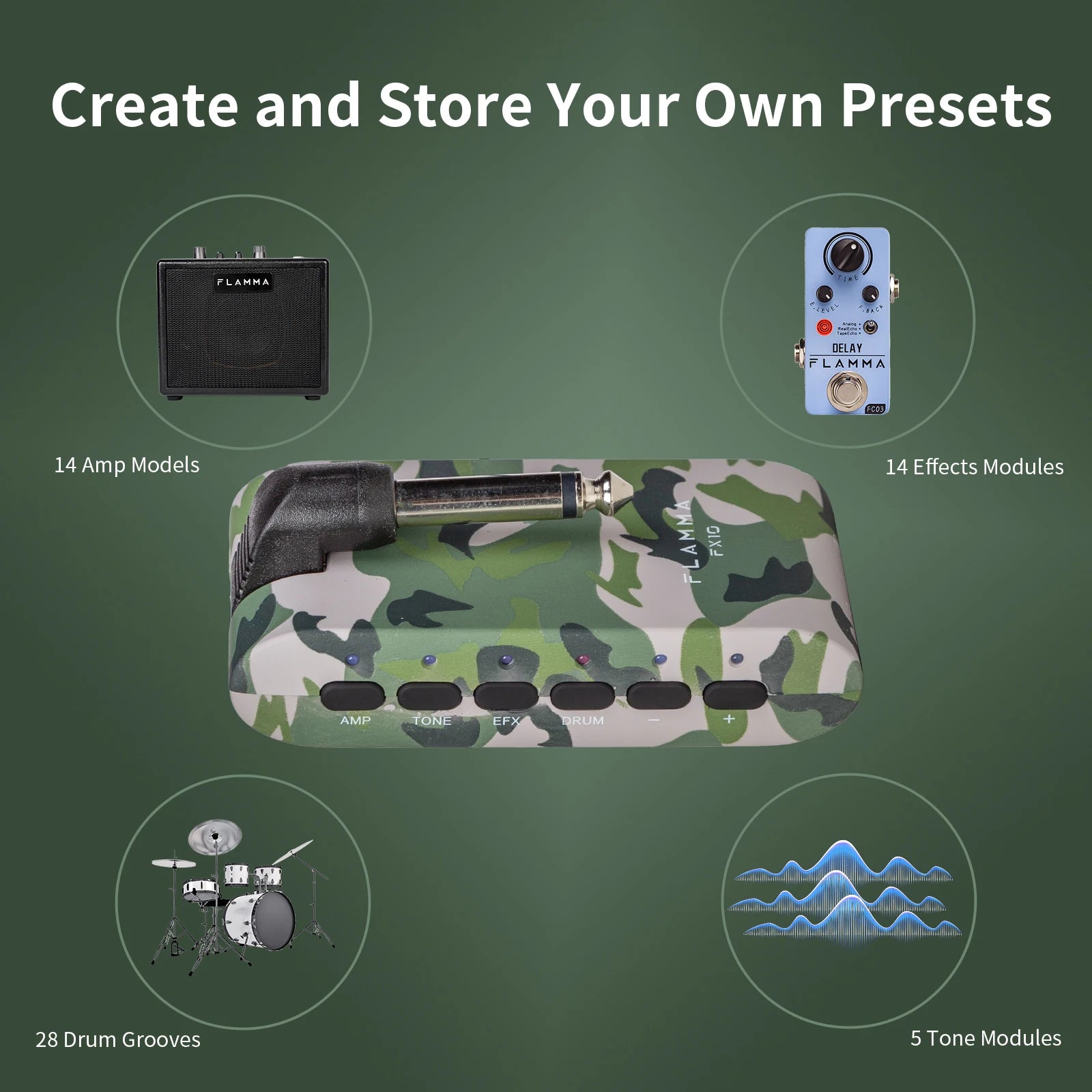 Every riff feels like a thunderstorm tearing through a neon city — because it is. The FLAMMA FX10 Heavy Metal Headjack turns your bedroom, your van, your grandma’s basement—wherever you are—into a sold-out arena. With 14 savage amp models, 14 killer effects, and 28 drum grooves that actually groove, this little beast turns practice into chaos. Pair it with Bluetooth, crank the tone, and feel your solos melt asphalt.