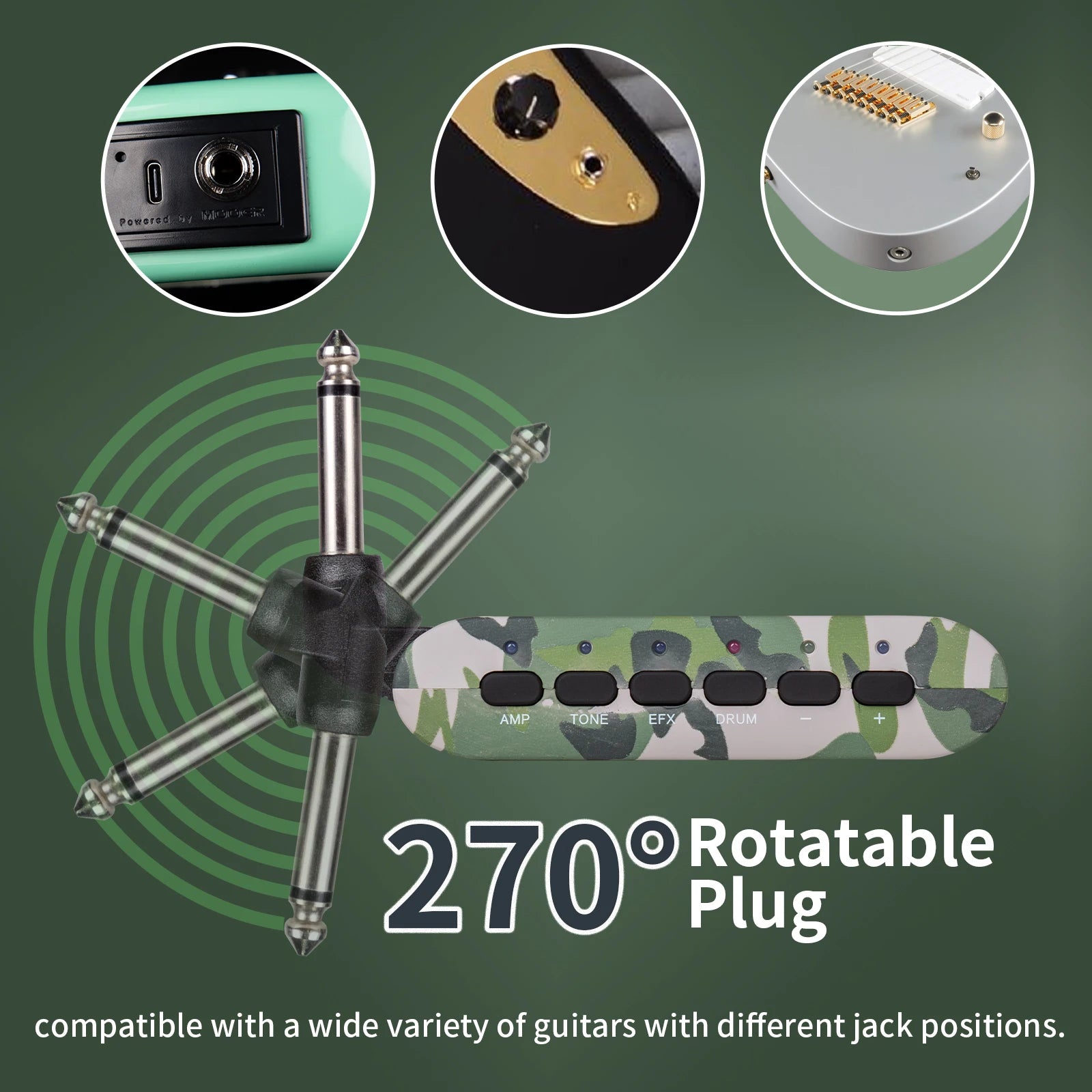 FX10 has a 270° rotatable plug that can be used in various jack positions of guitars.