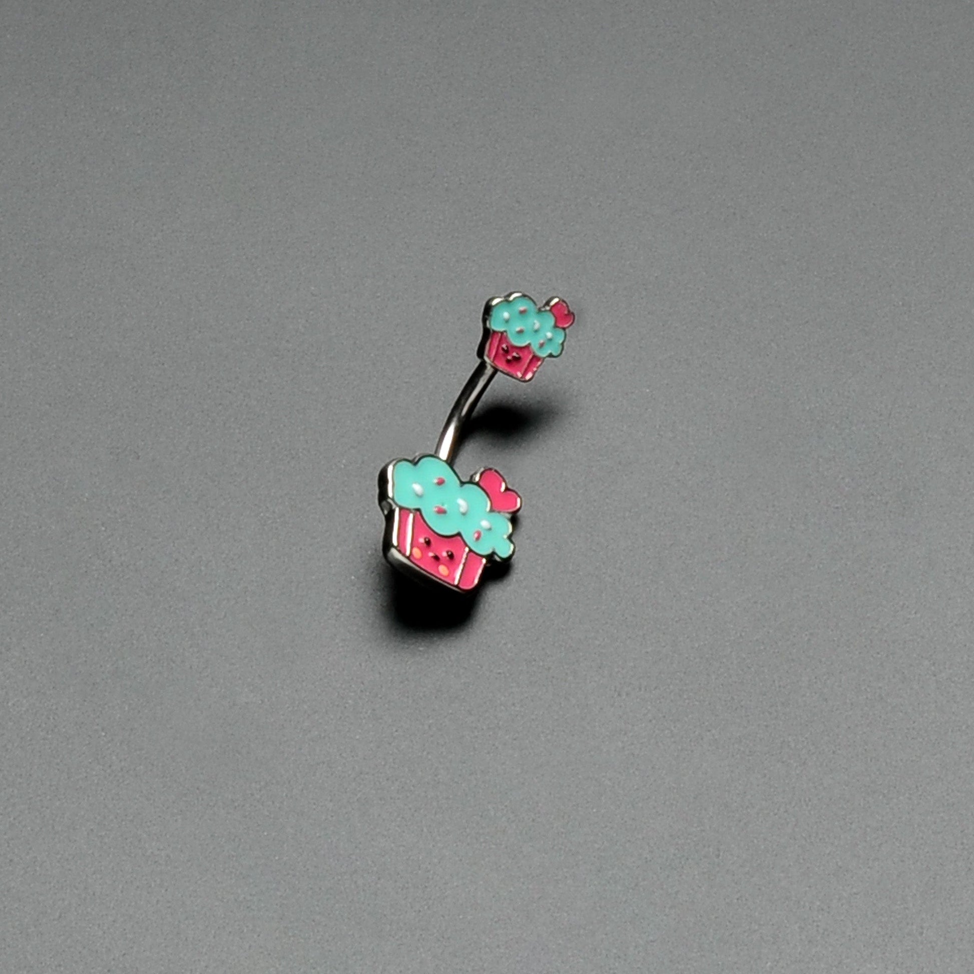 Sweet Happy Cupcake Pink Blue Double Mount Belly Ring